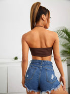 بلوزة هالتر مكشكشة من الخلف مع رباط سحب