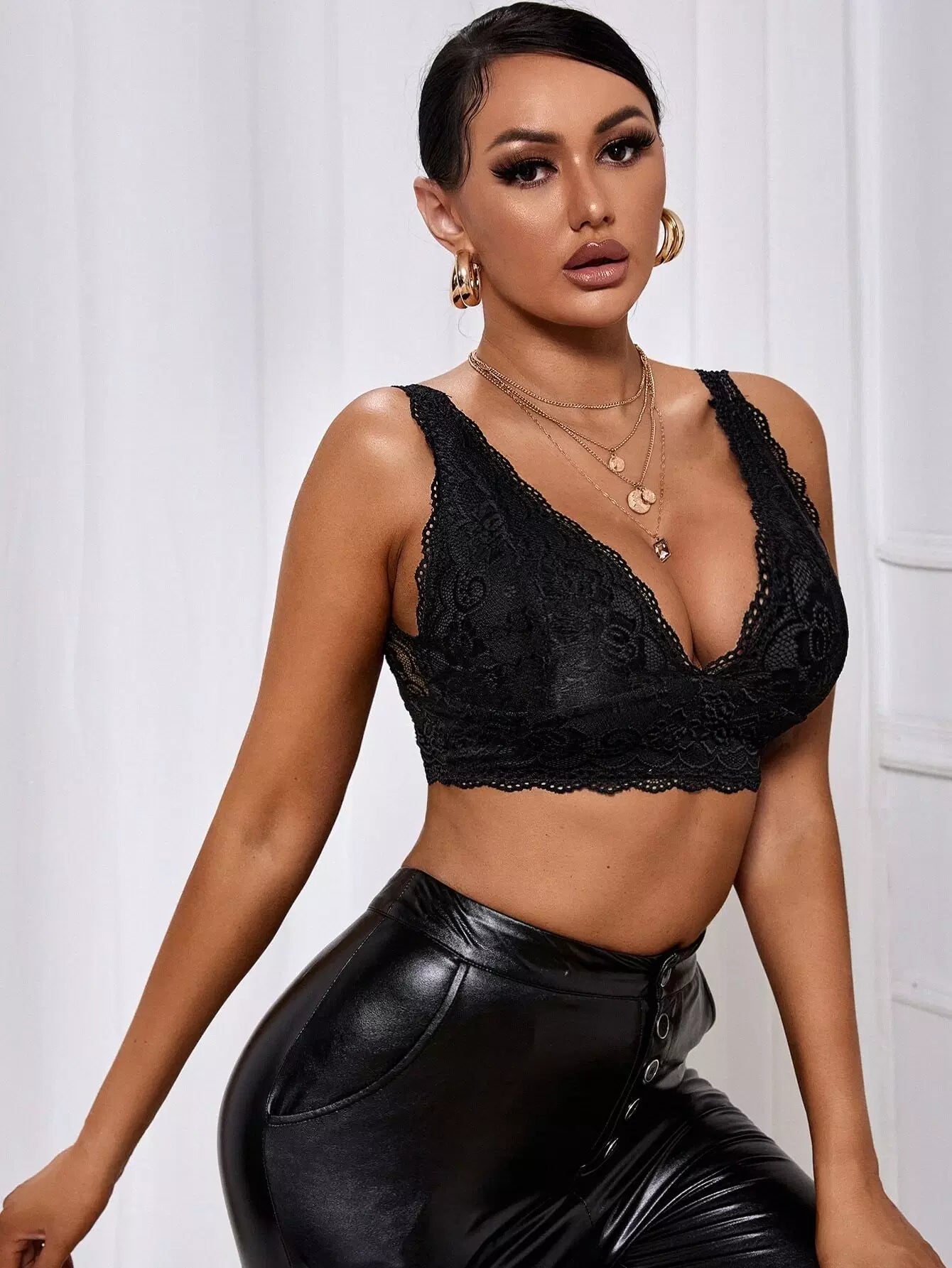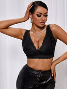 بلوزة قصيرة من الدانتيل الدانتيل برقبة مكشوفة بفتحة عنق واسعة