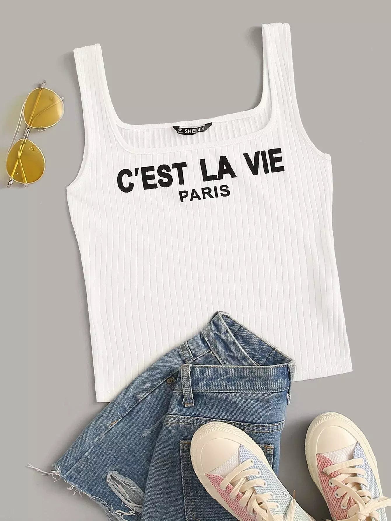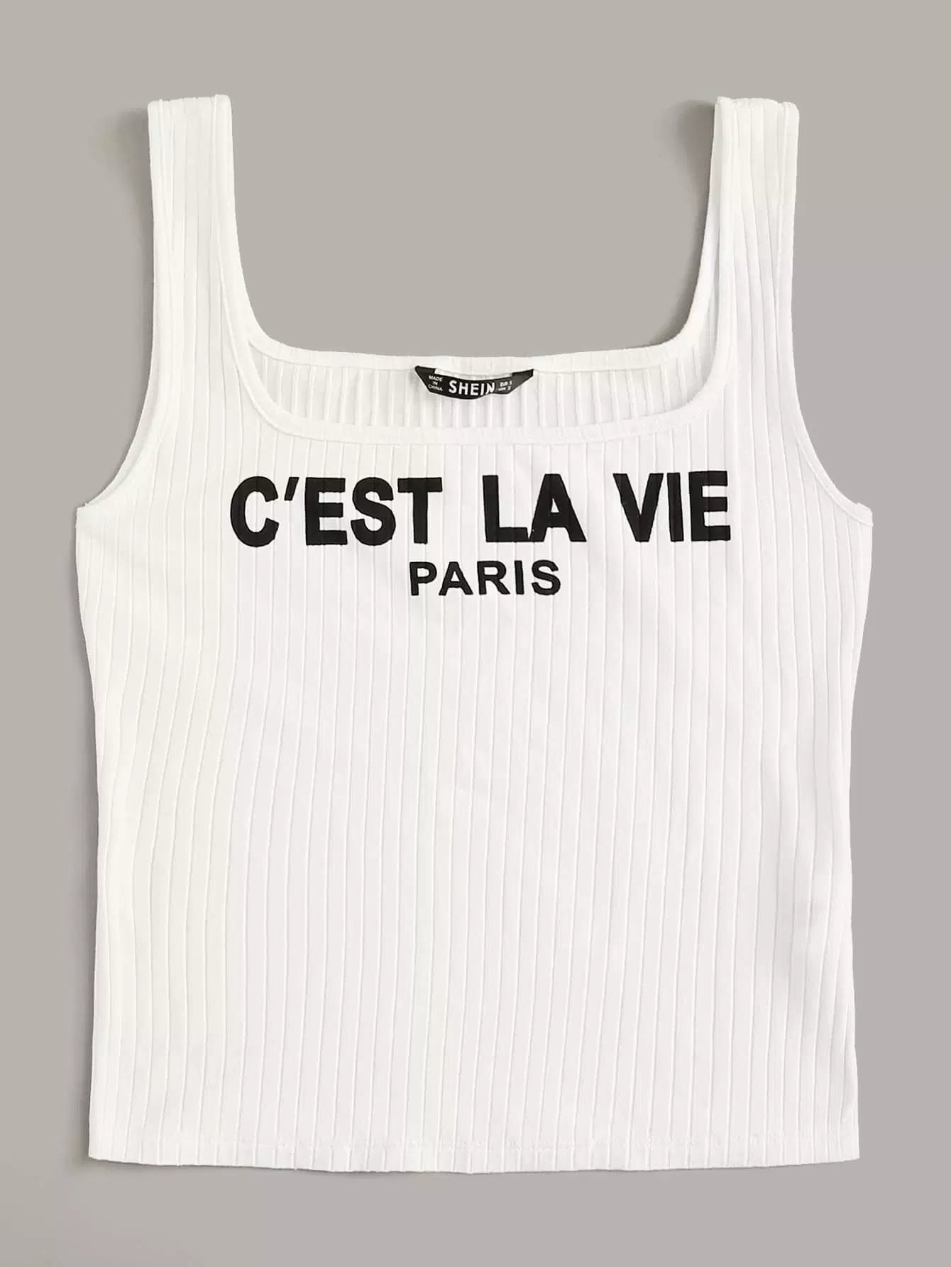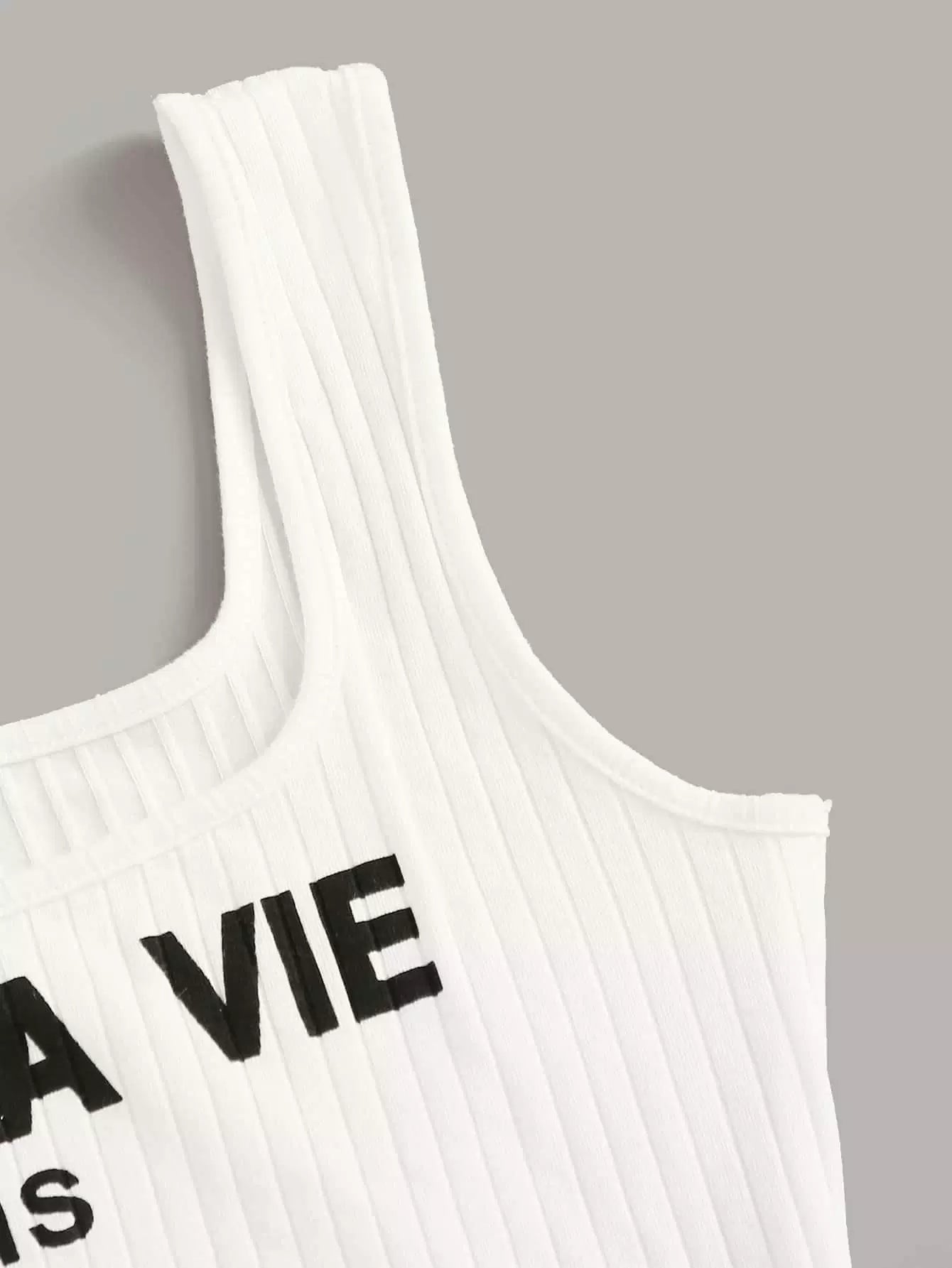 تانك بدون أكمام محبوكة على شكل ضلع محبوكة بشعار شعار