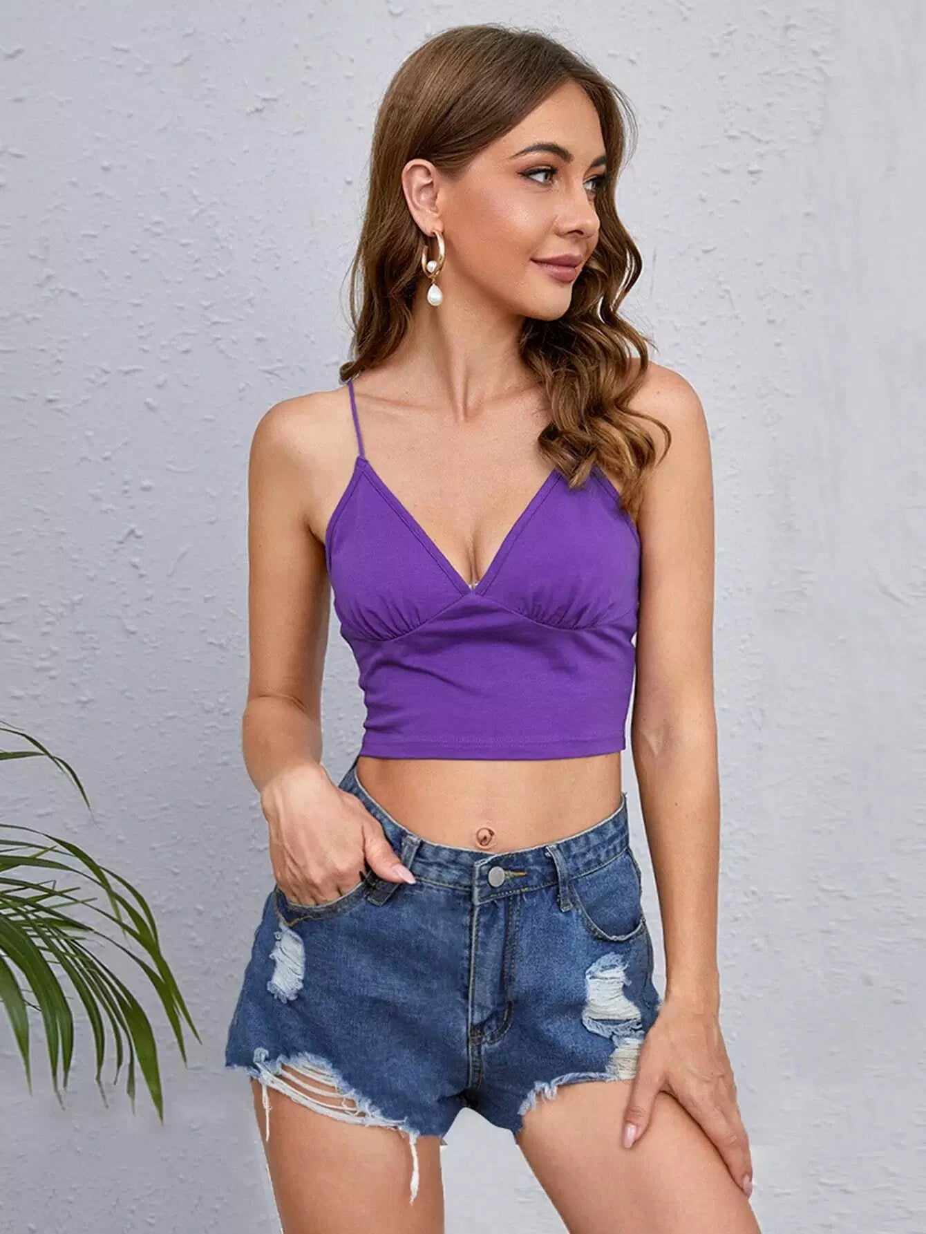 قميص قصير قصير بياقة على شكل V بياقة على شكل حرف V