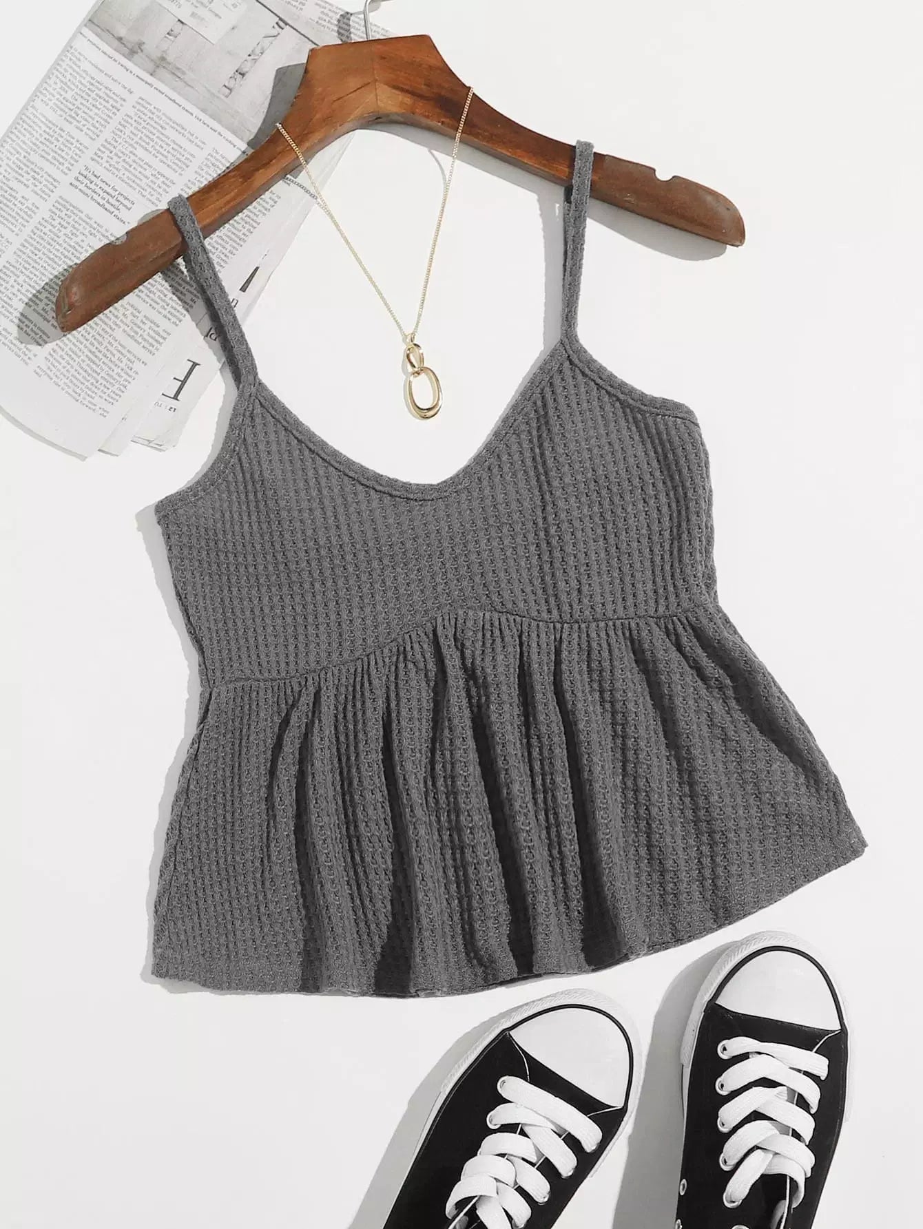 بلوزة كامي محبوكة بحاشية مكشكشة