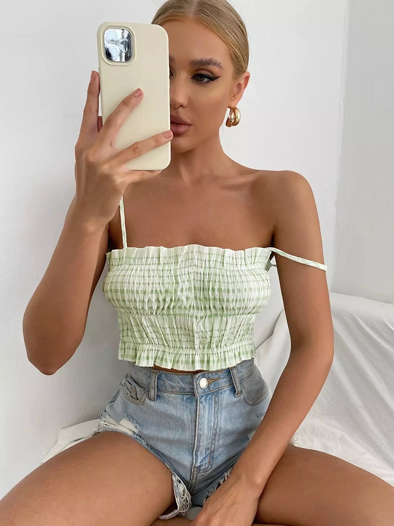 توب كشكش بحواف مكشكشة منقوشة منقوشة