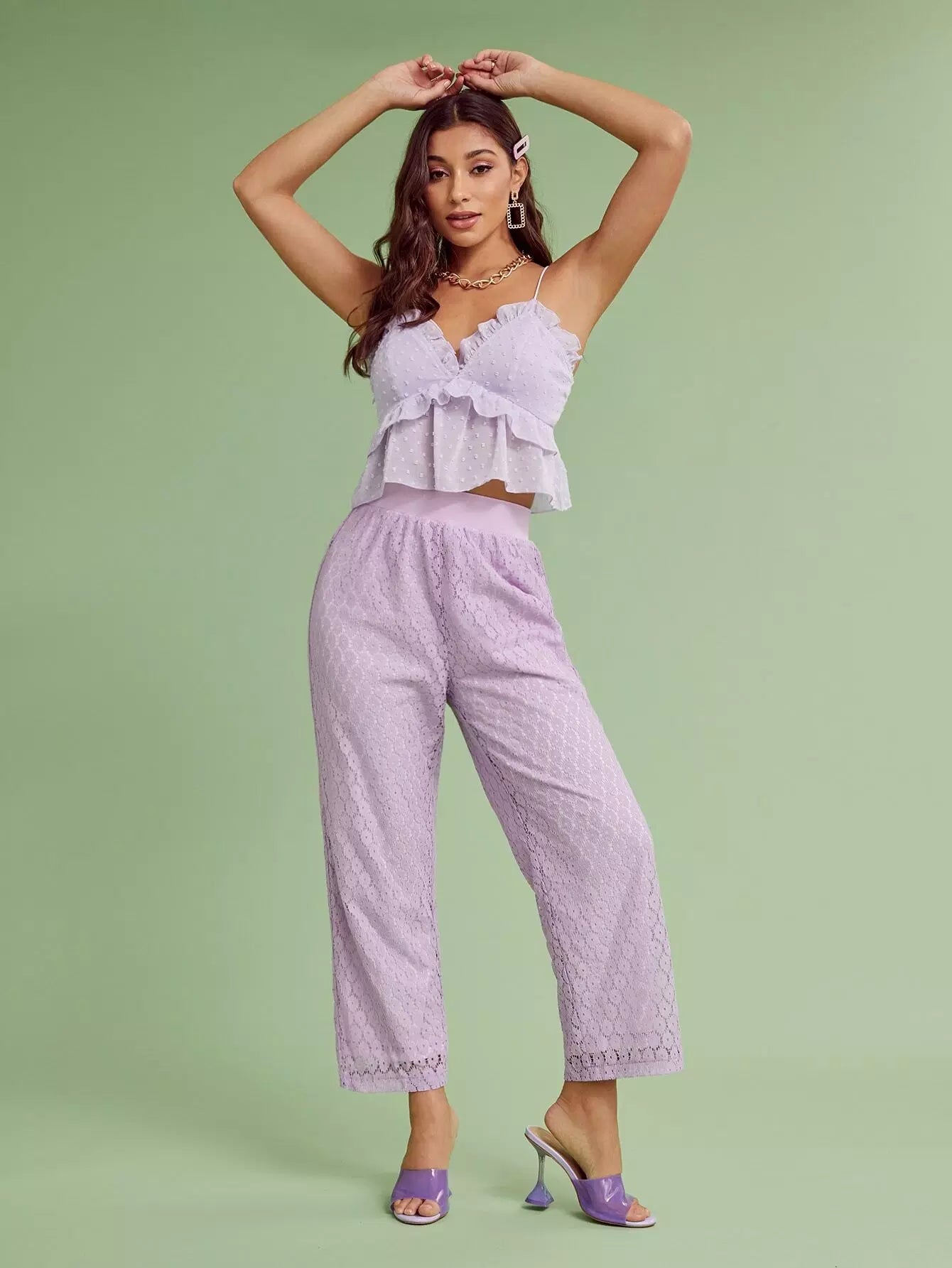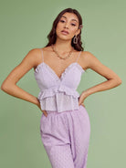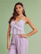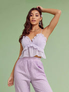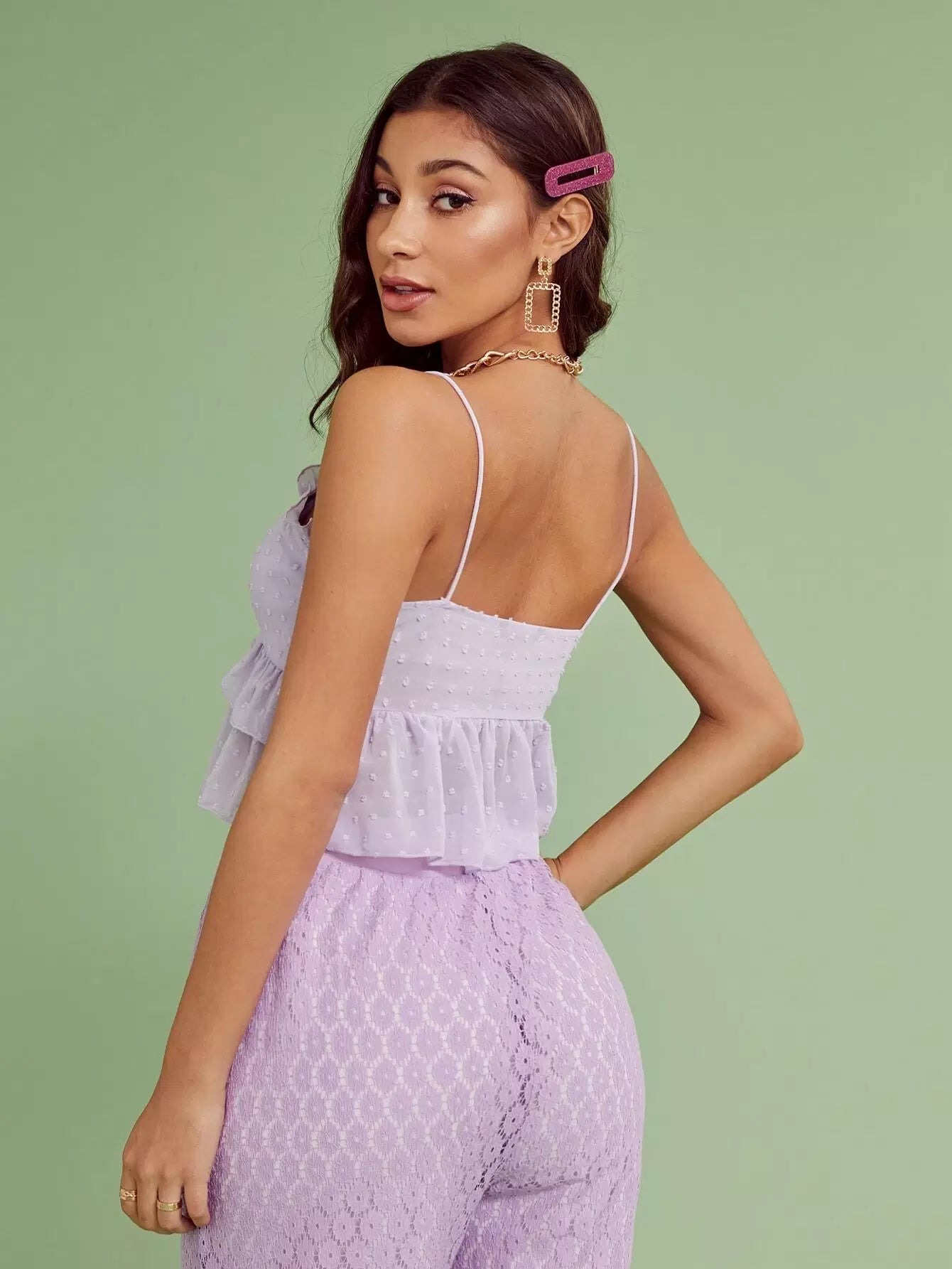 قميص قصير مكشكش منقّط سويسري بحواف مكشكشة