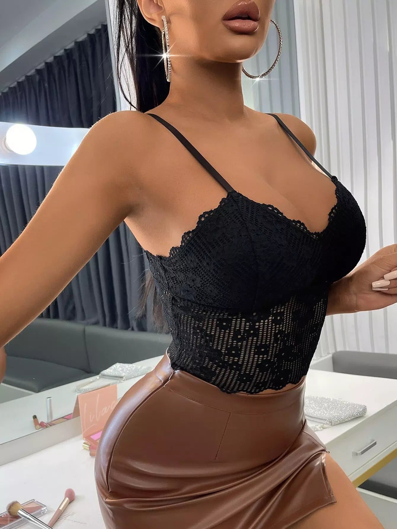 قميص قصير من الدانتيل بحواف من الدانتيل الإسكالوب