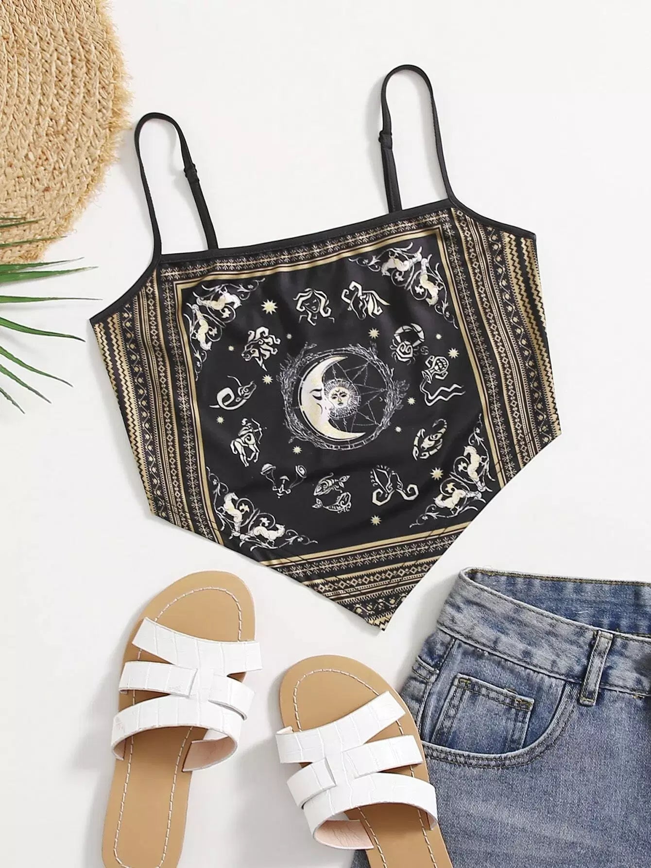 بلوزة كامي بطبعة وشاح بحافة غير متماثلة