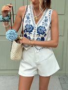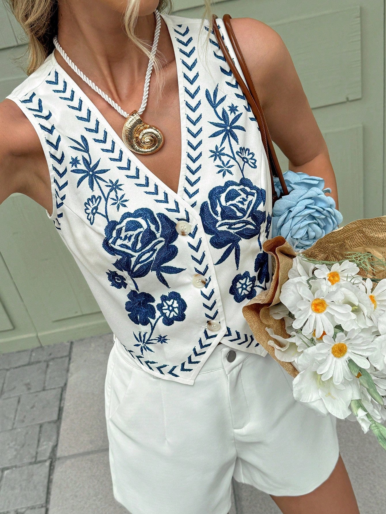 بلوزة نسائية كاجوال بدون أكمام بطبعة زهور وأزرار أمامية من Serisse