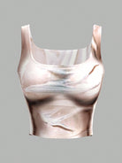 بلوزة تانك توب قصيرة بدون أكمام بتصميم صيفي من SHEIN ICON مع طبعة للجسم