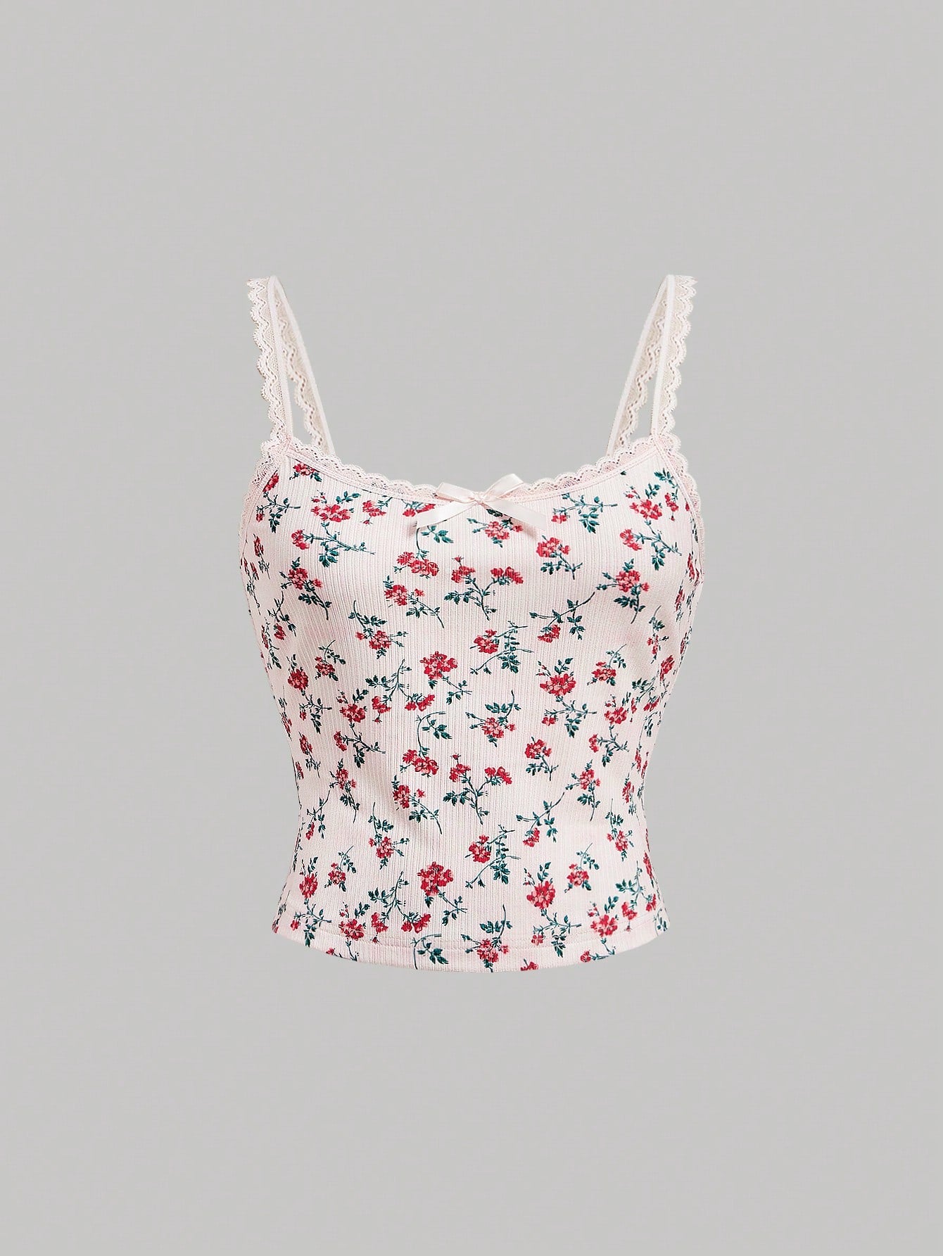 women SHEIN MOD Red Floral Lace Cami Tank Top