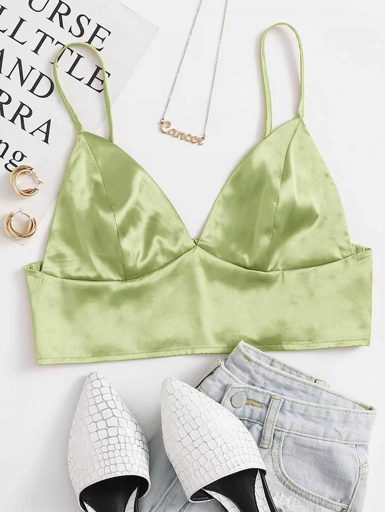 توب بحمالات صدرية من الساتان بشريط من الخلف
