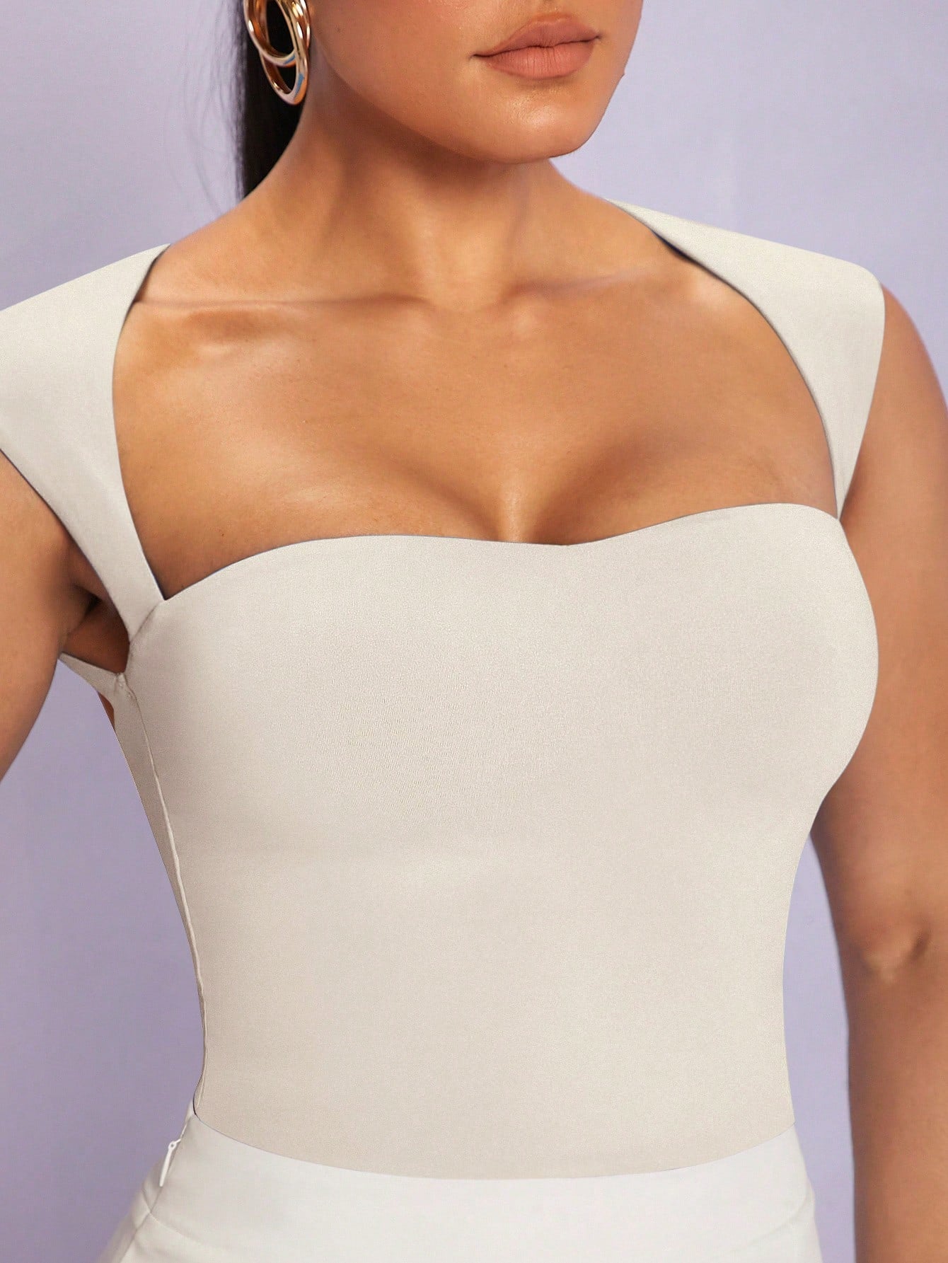 بلوزة كت بدون أكمام من سيلكيه بياقة على شكل قلب