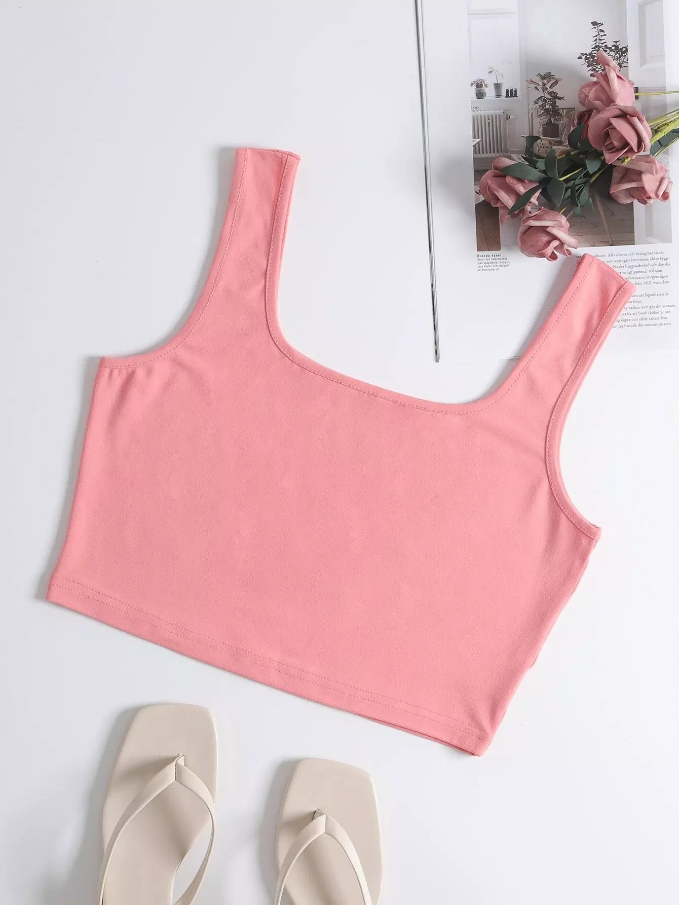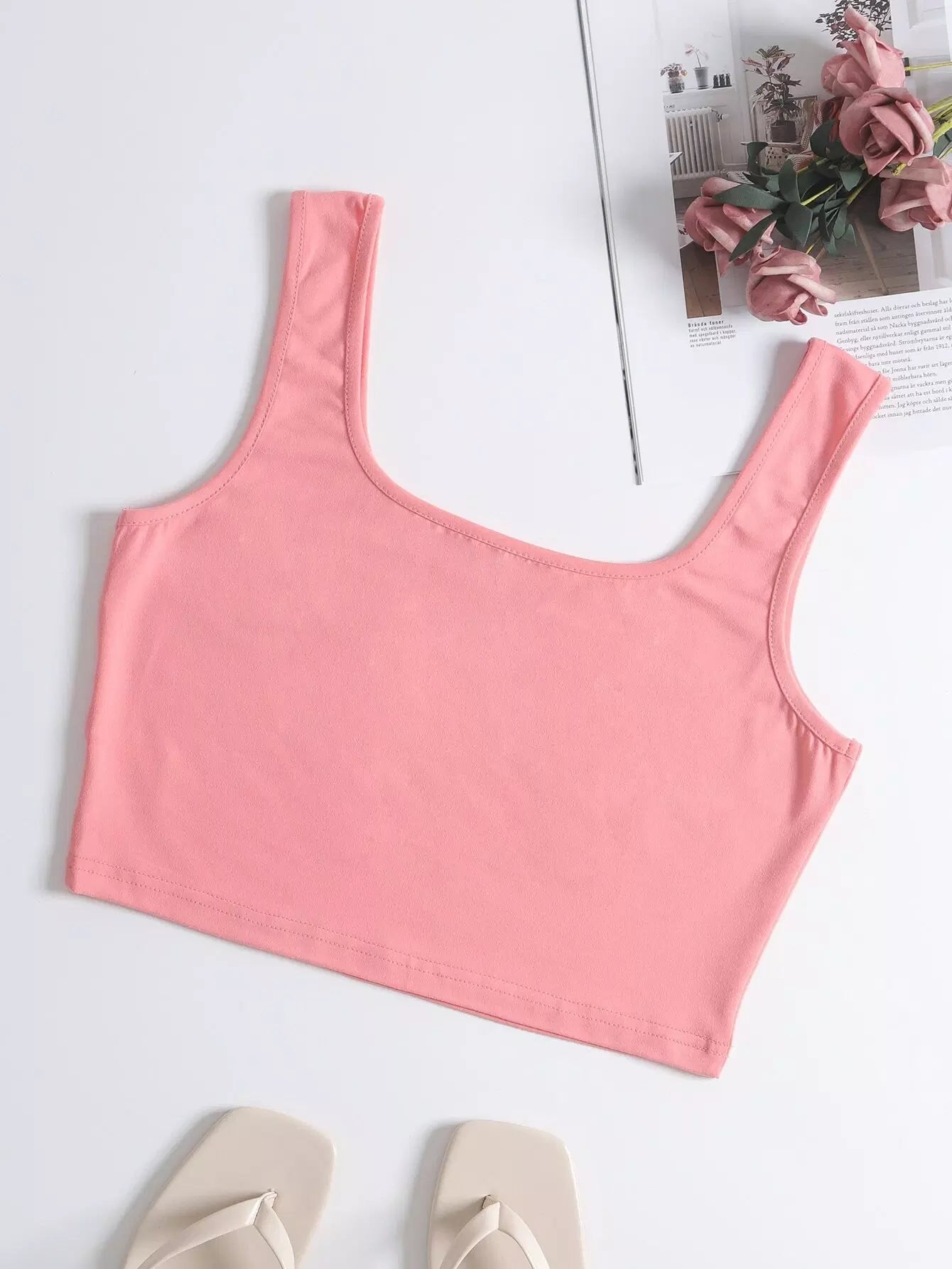 تانك قصير بدون أكمام قصيرة سادة