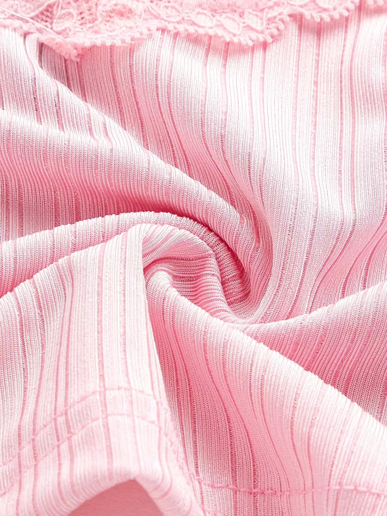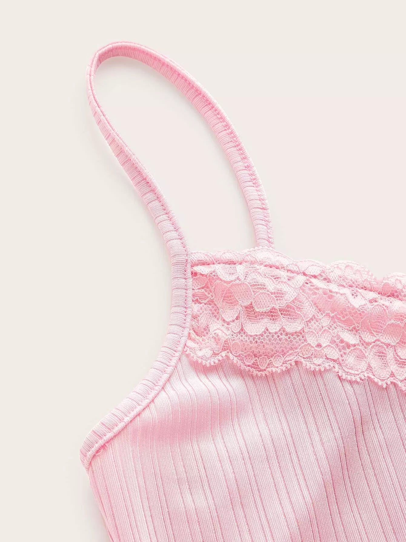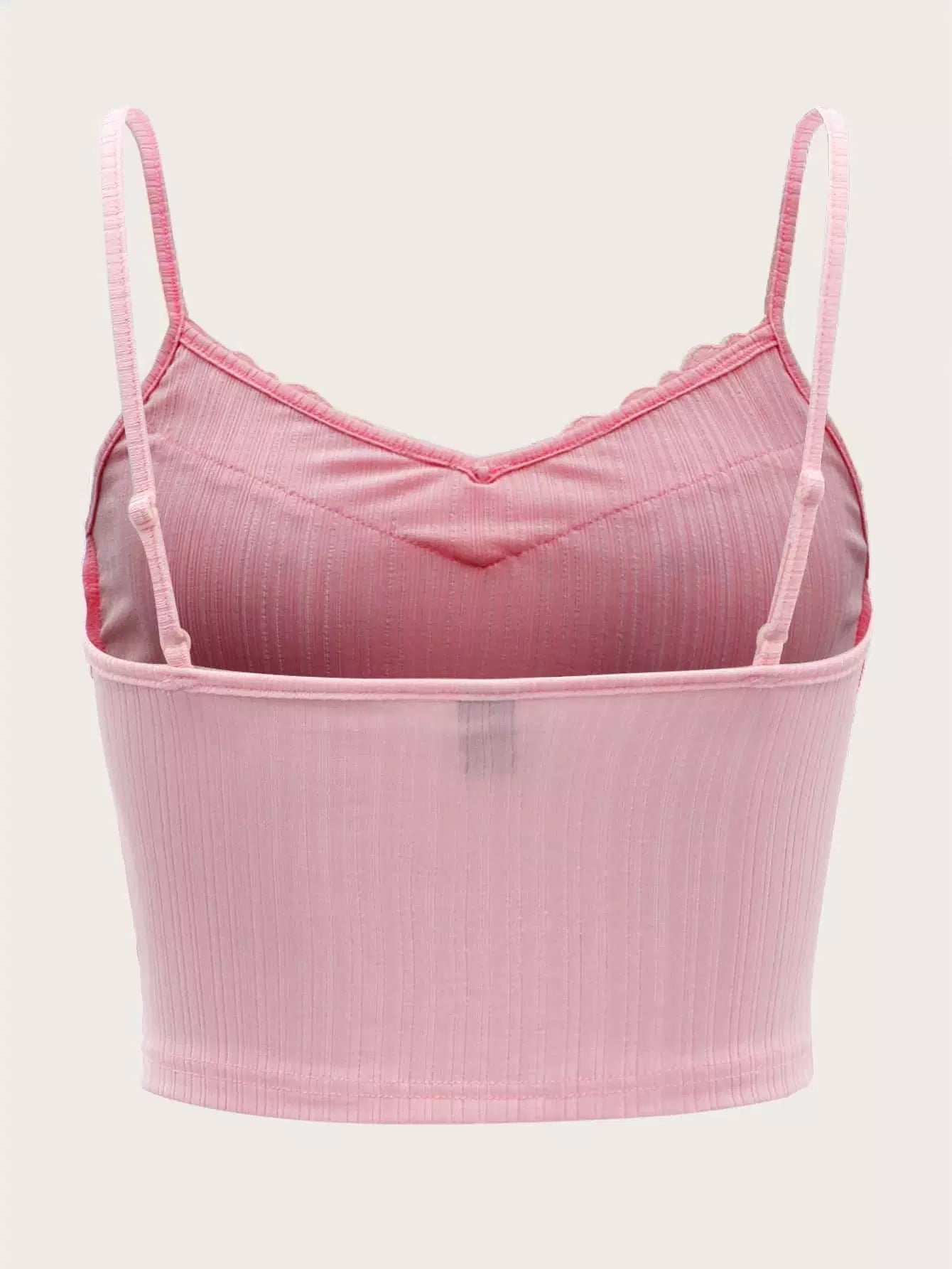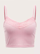 النساء - بلوزة كامي قصيرة مزخرفة بالدانتيل سادة