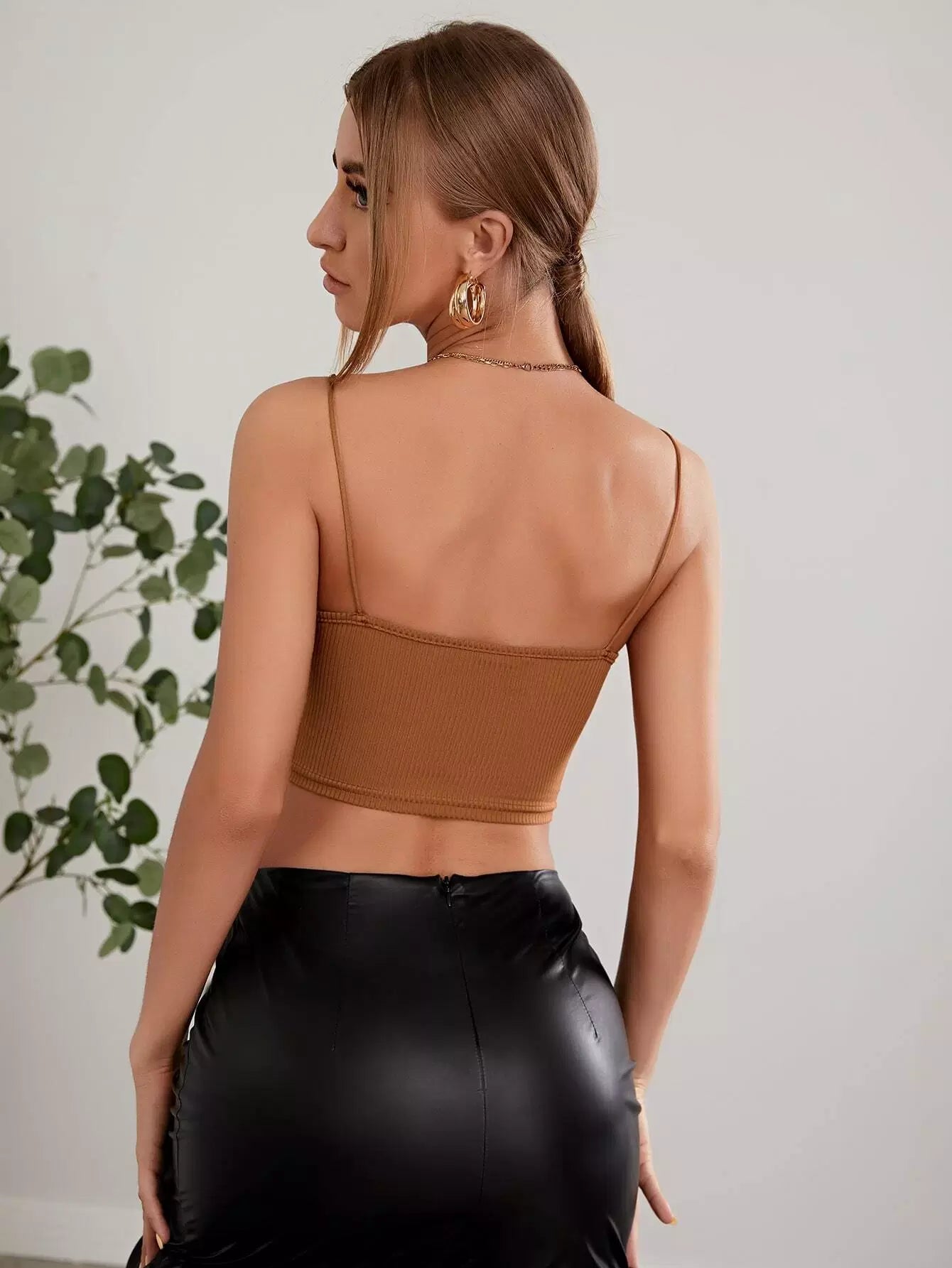 بلوزة قصيرة ضلع محبوكة سادة محبوكة