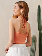 بلوزة سادة محبوكة برباط من نسيج مضلع محبوكة من الخلف ومربوطة من الخلف