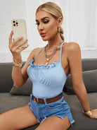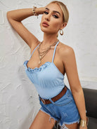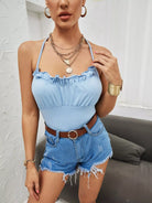 بلوزة بحواف مكشكشة سادة مكشكشة بدون رسن من الخلف