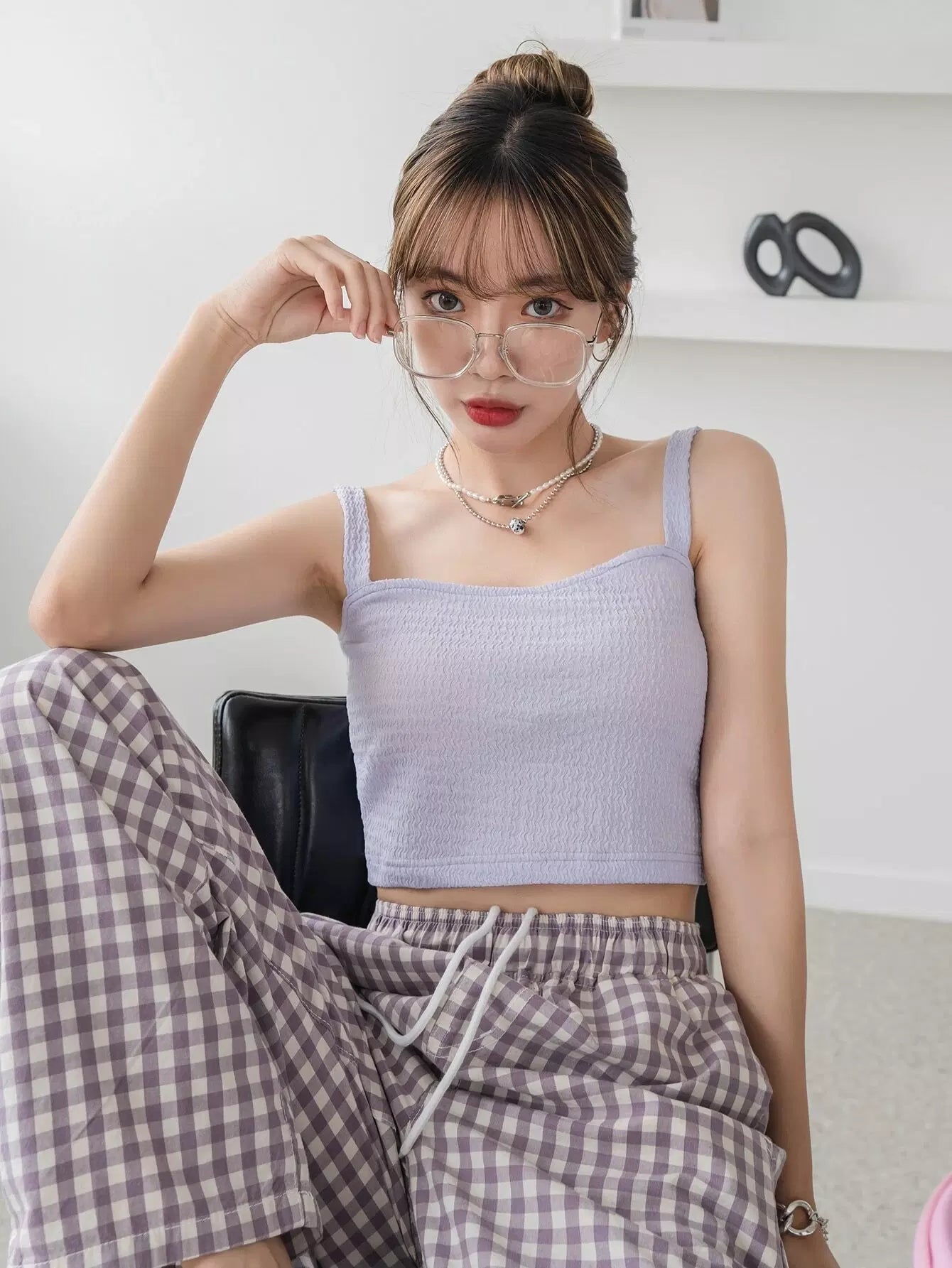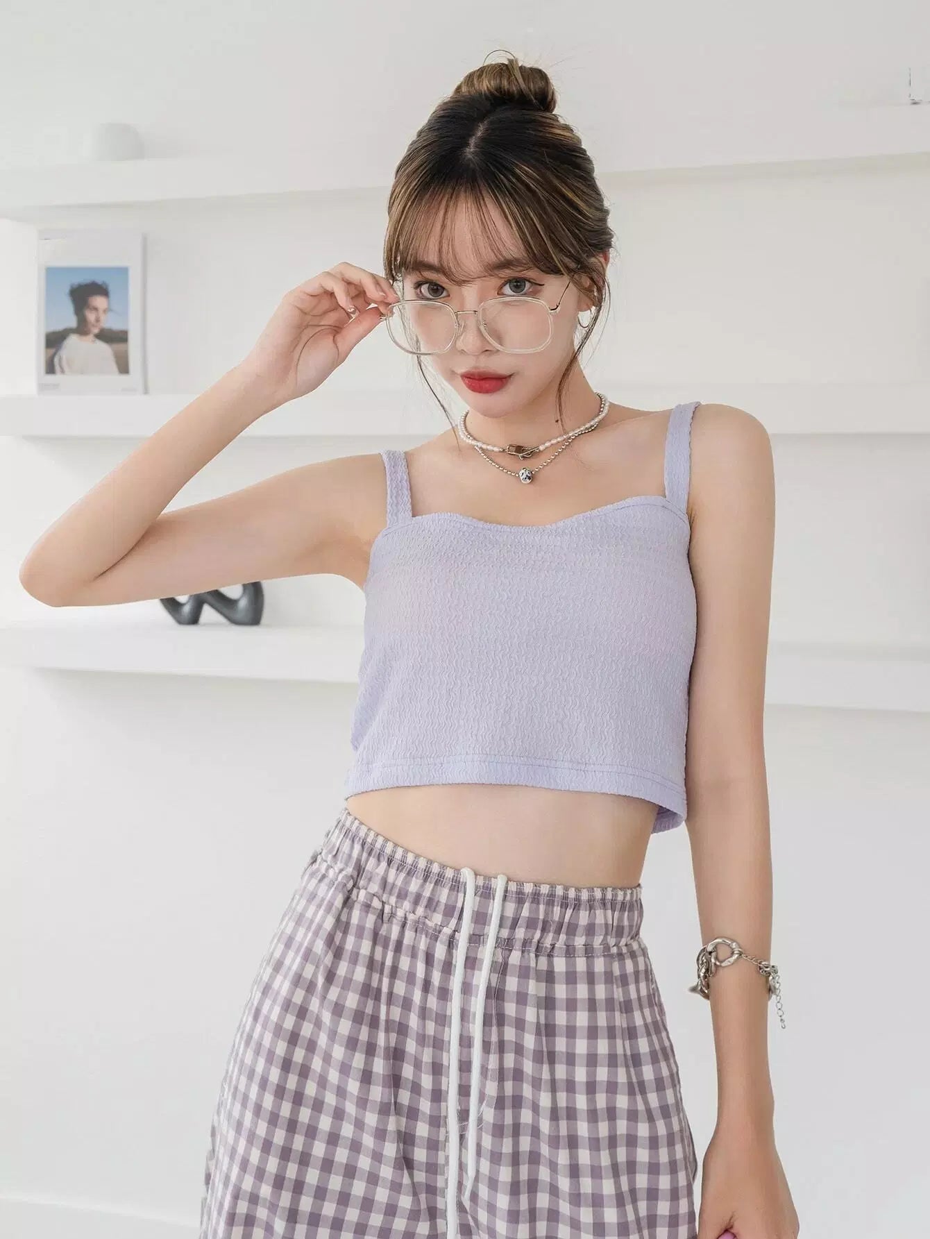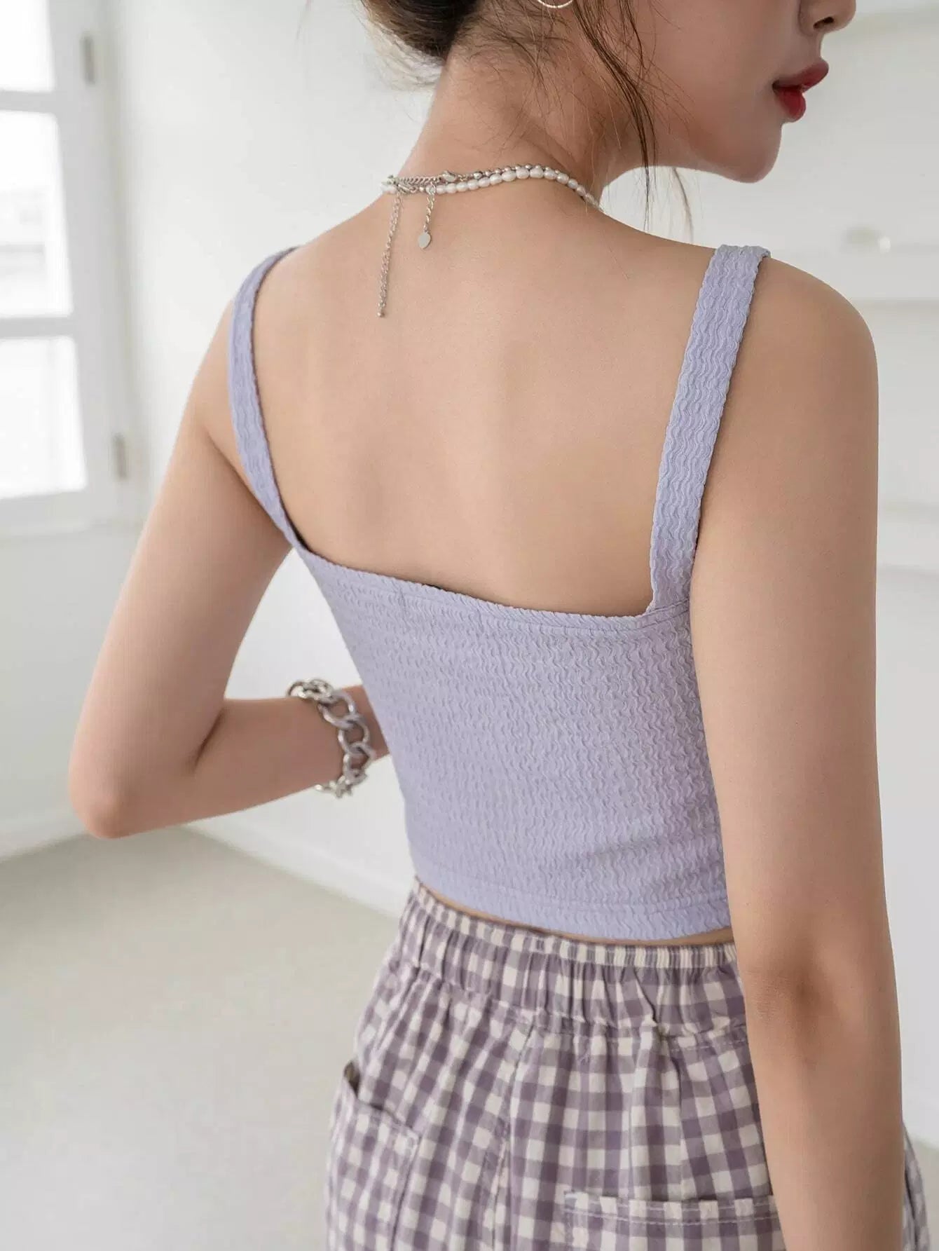 بلوزة قصيرة بحمالات سباغيتي بحمالات سادة