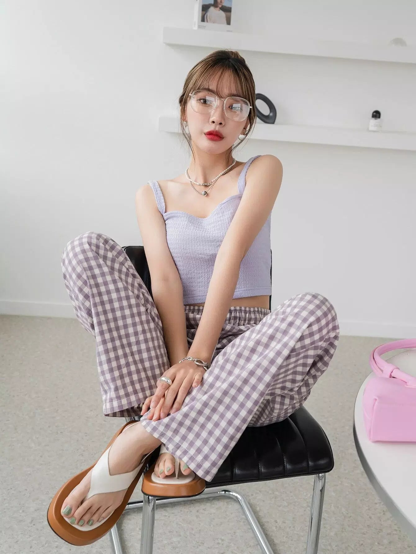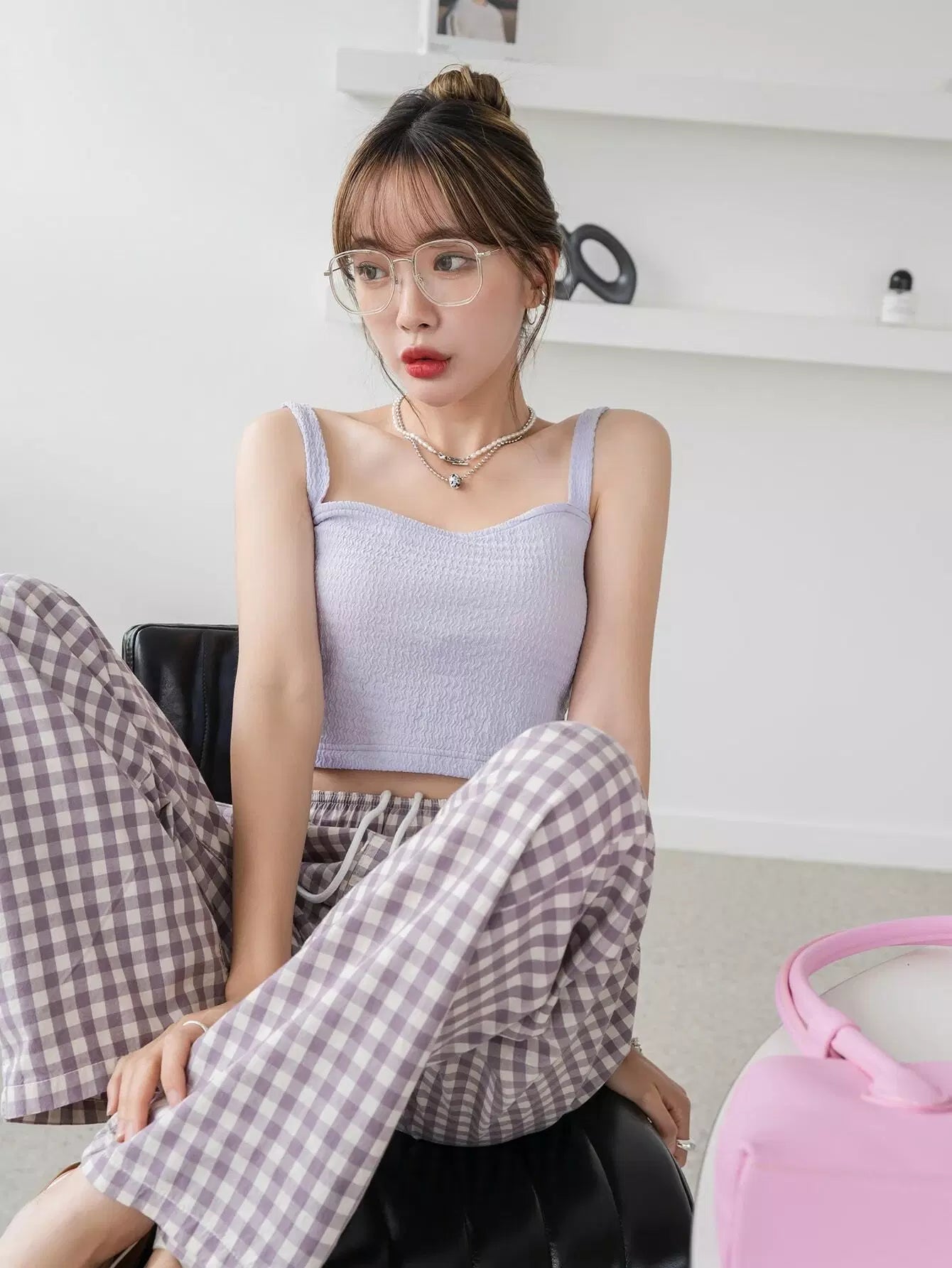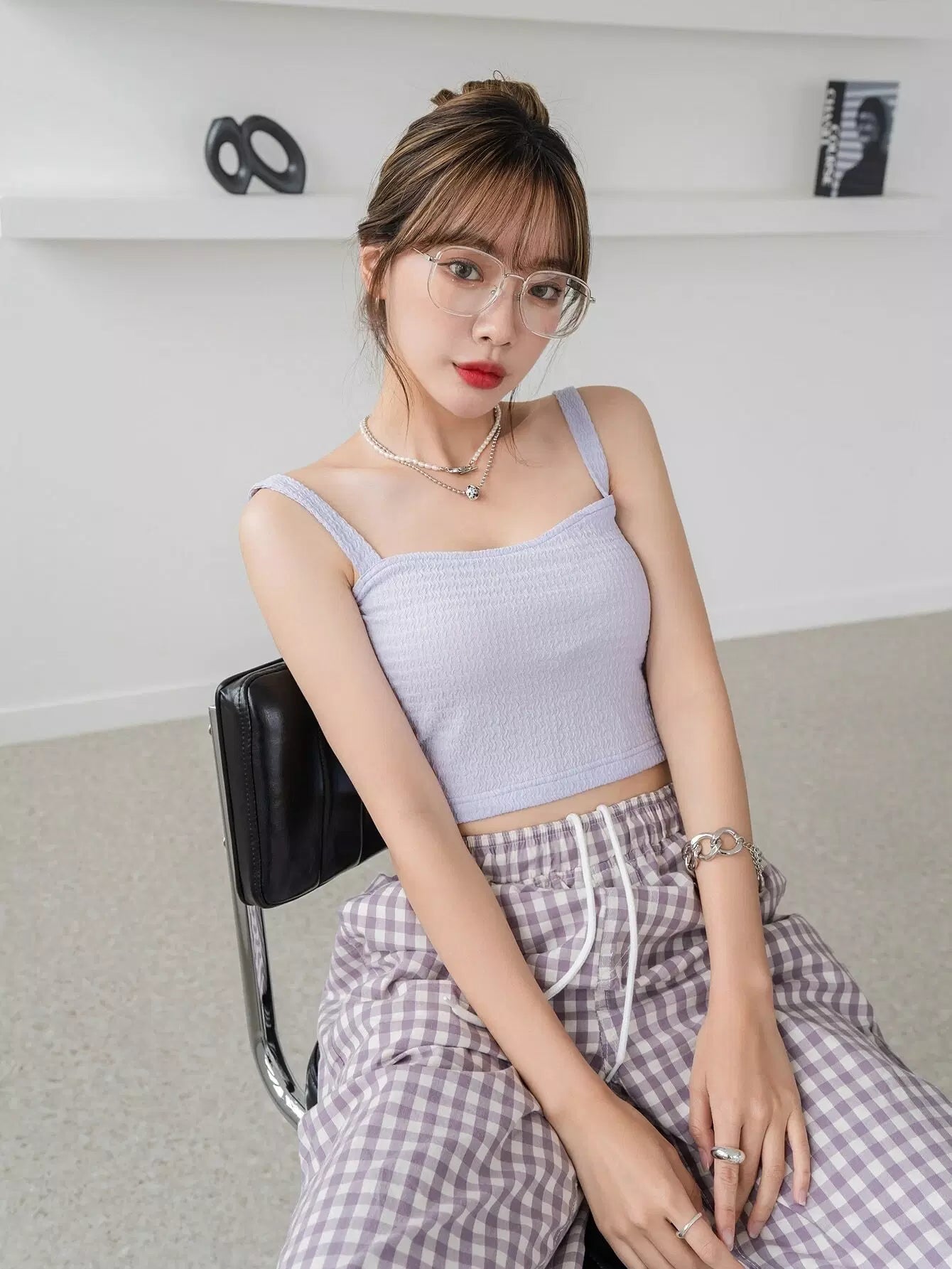 بلوزة قصيرة بحمالات سباغيتي بحمالات سادة