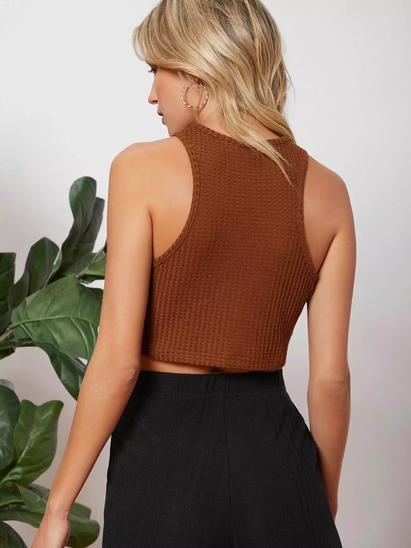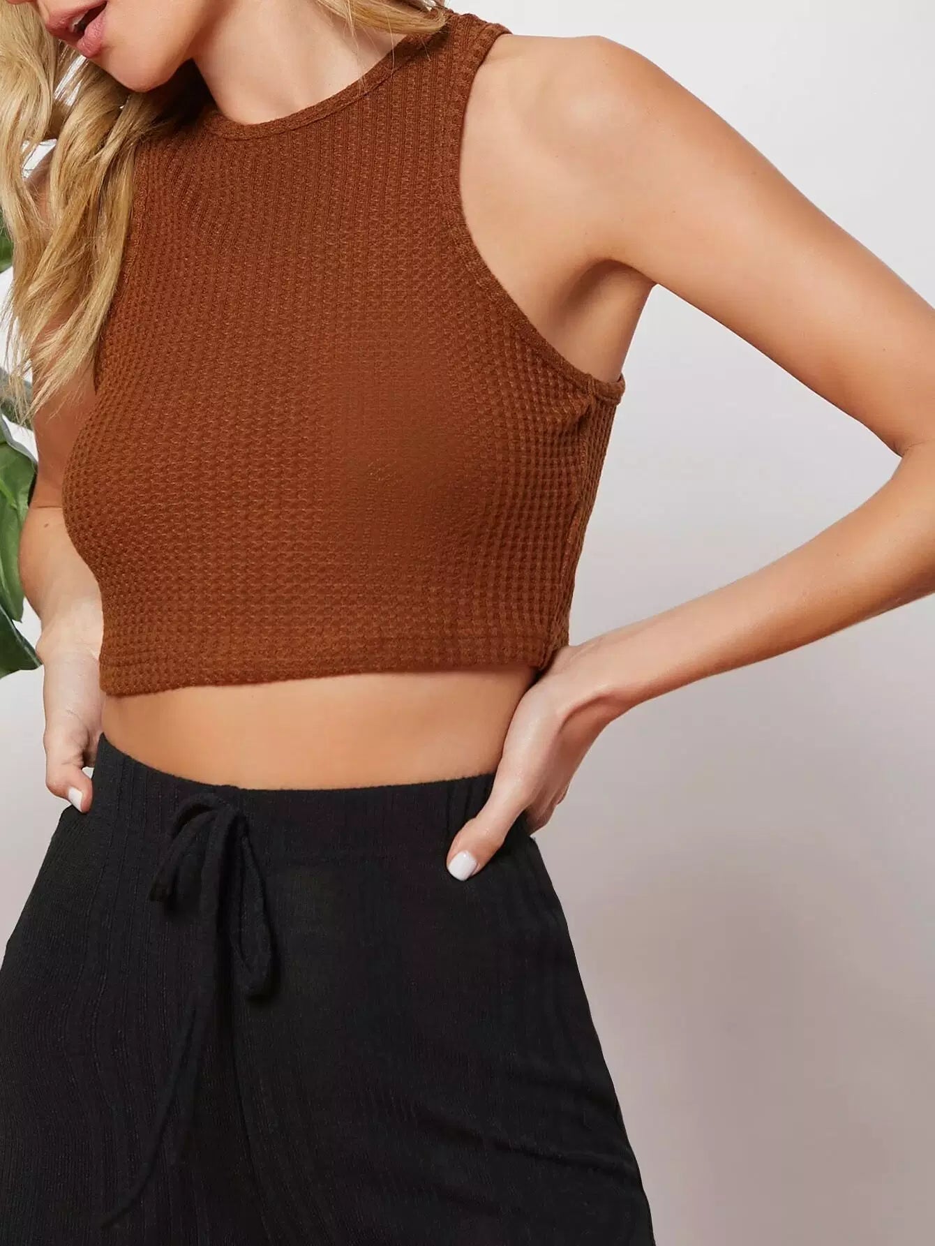 النساء - قميص بدون أكمام قصير من نسيج وافل متين