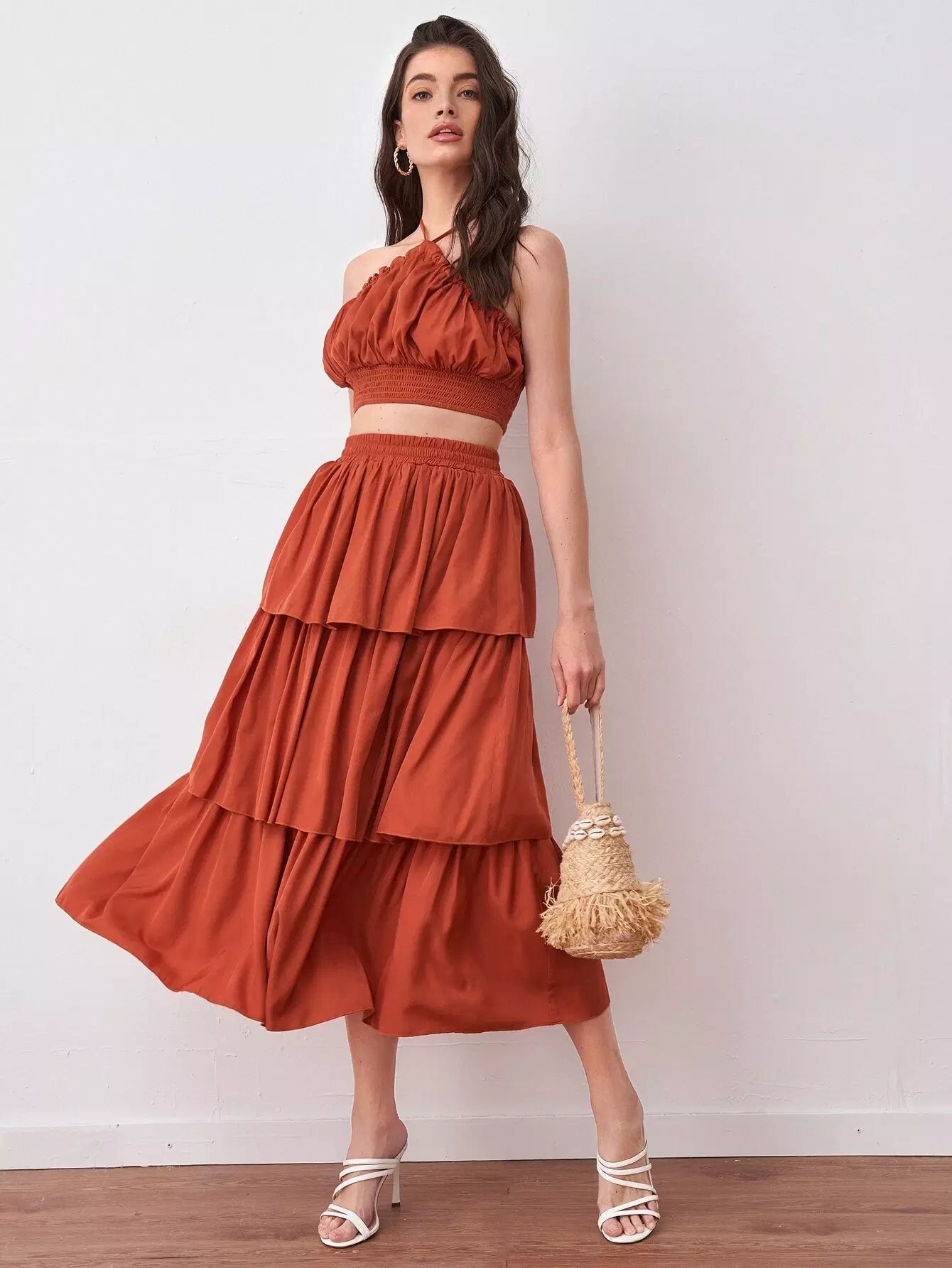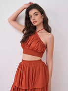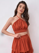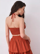 بلوزة بحاشية ضيقة بربطة عنق من الخلف برباط من الخلف وحافة ضيقة على الرسن