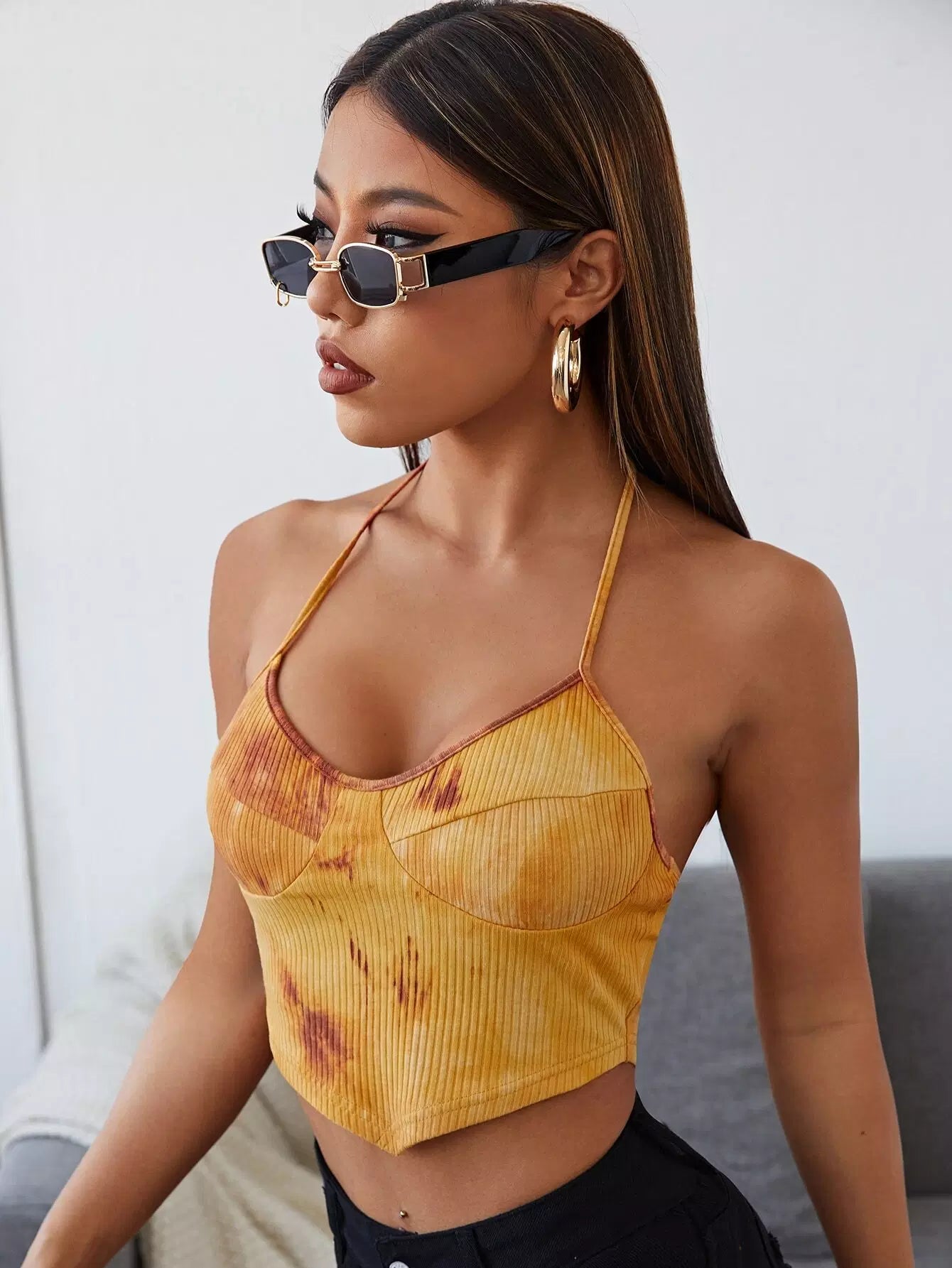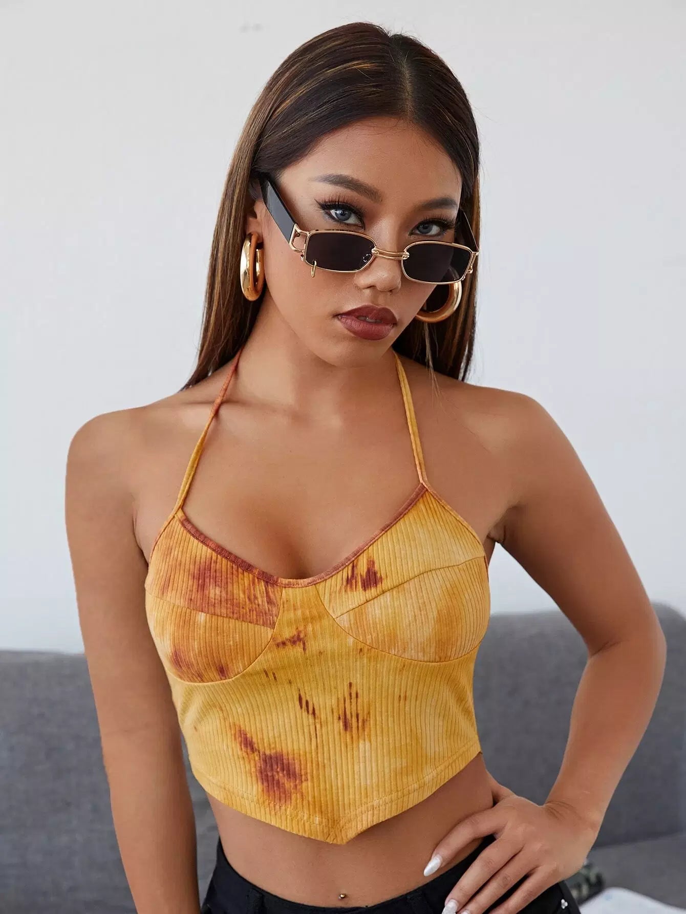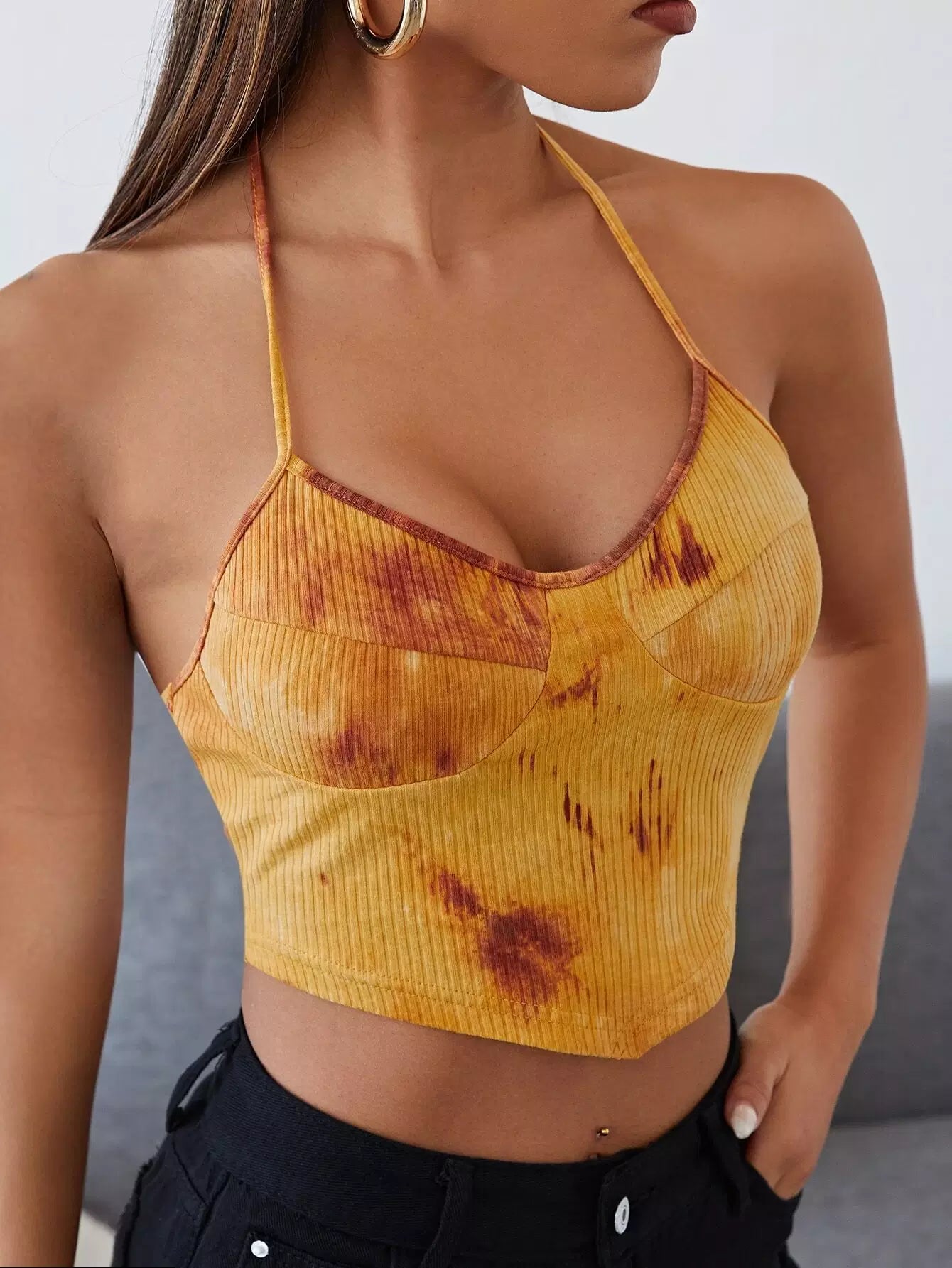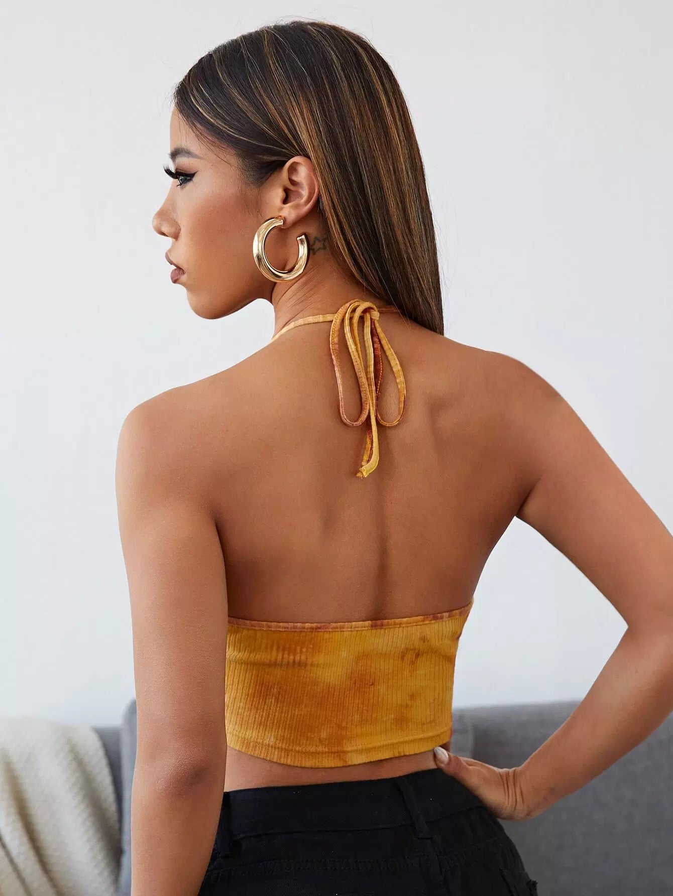 بلوزة بدون أكمام بتصميم عقدة من الخلف مع صبغات التعادل