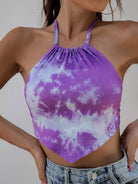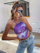 بلوزة قصيرة مكشوفة الظهر بتصميم عقدة مصبوغة بالربط