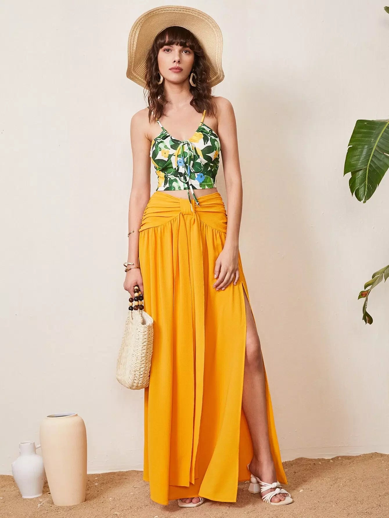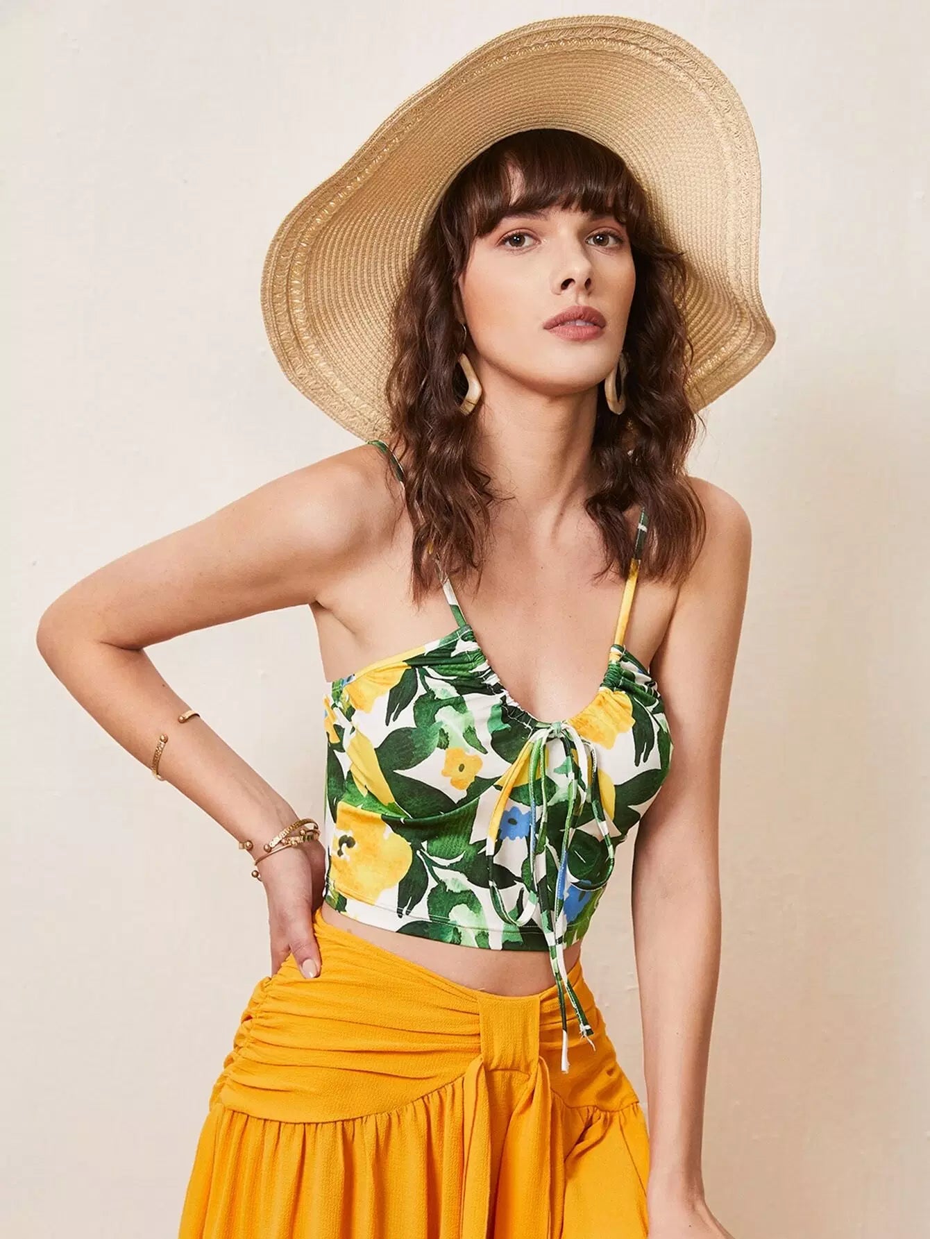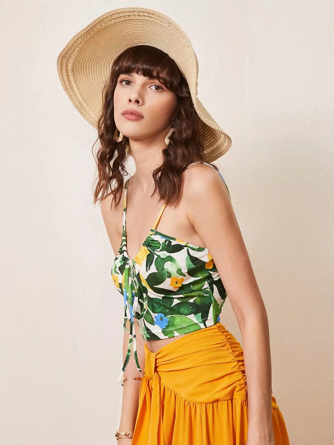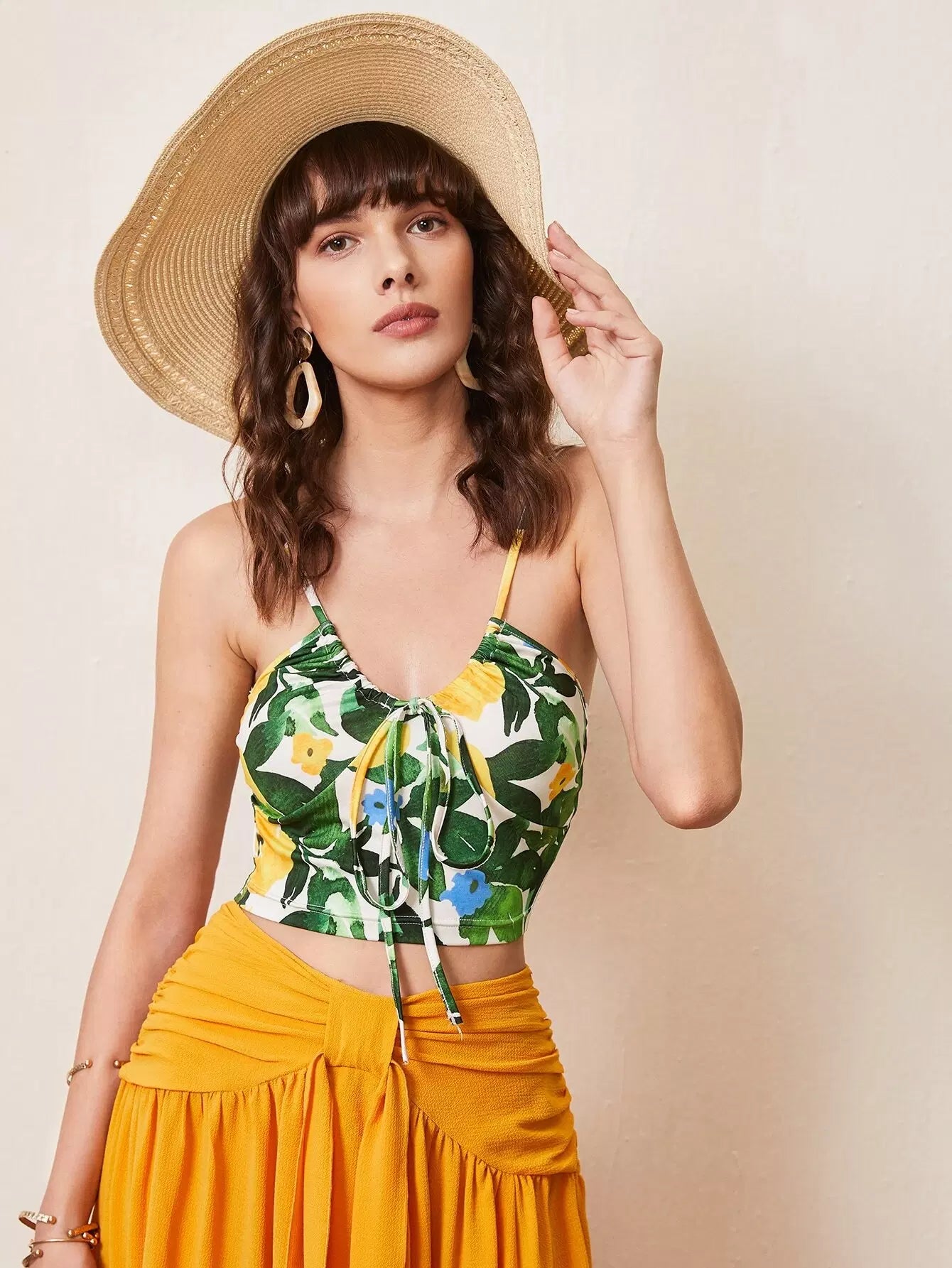بلوزة كامي قصيرة برباط أمامي