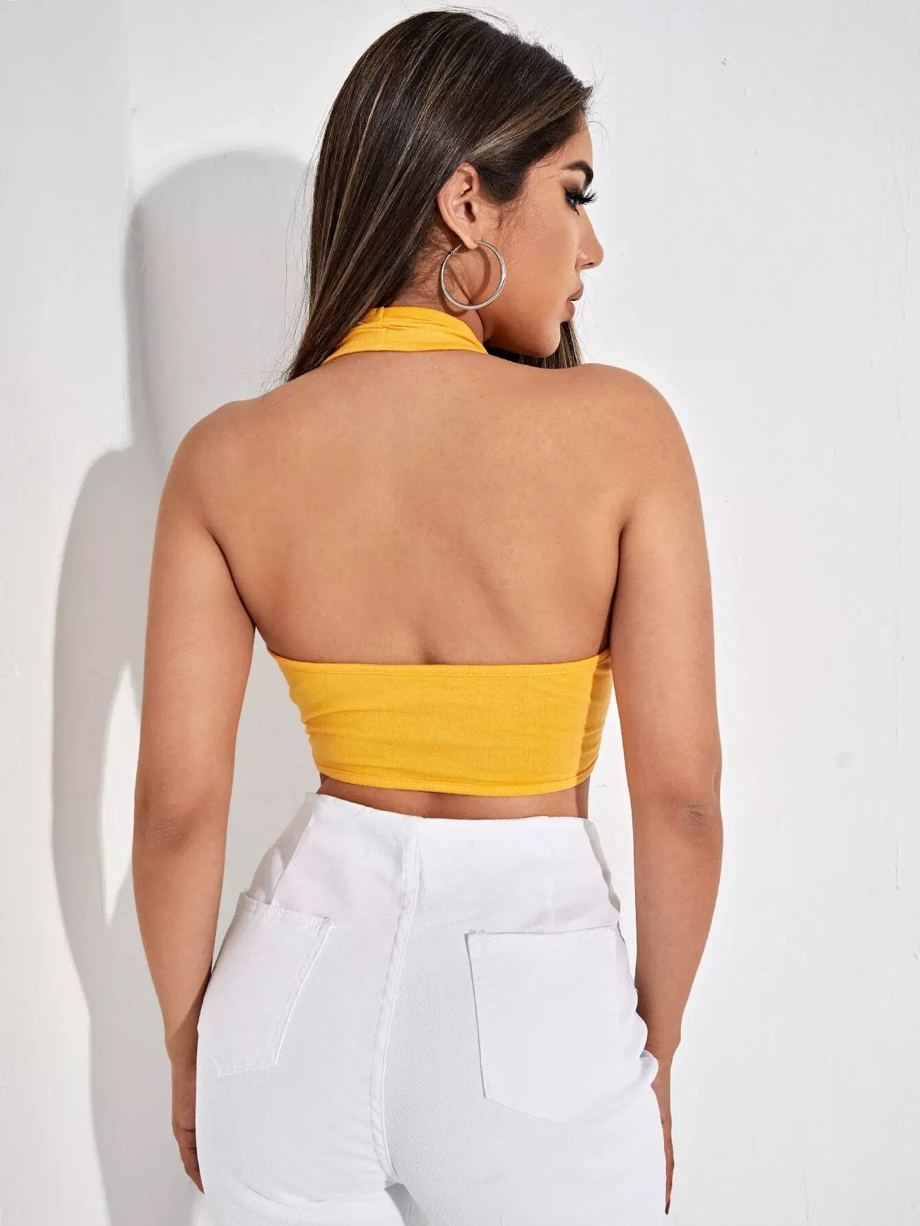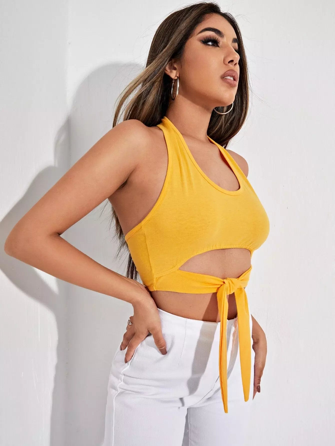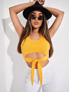 بلوزة قصيرة بربطة عنق أمامية برباط أمامي