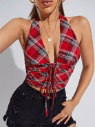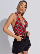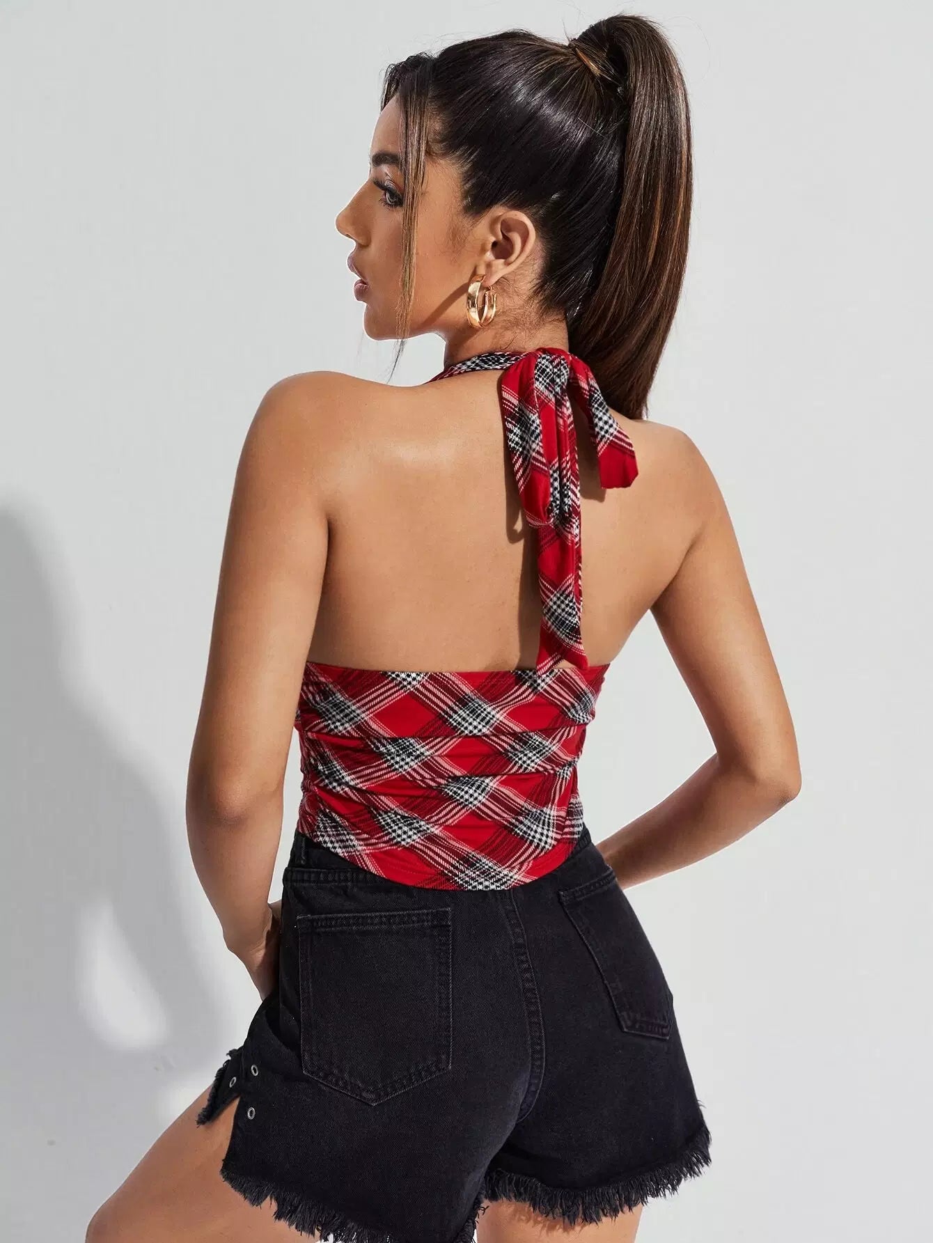 بلوزة بربطة عنق أمامية منقوشة بربطة عنق منقوشة