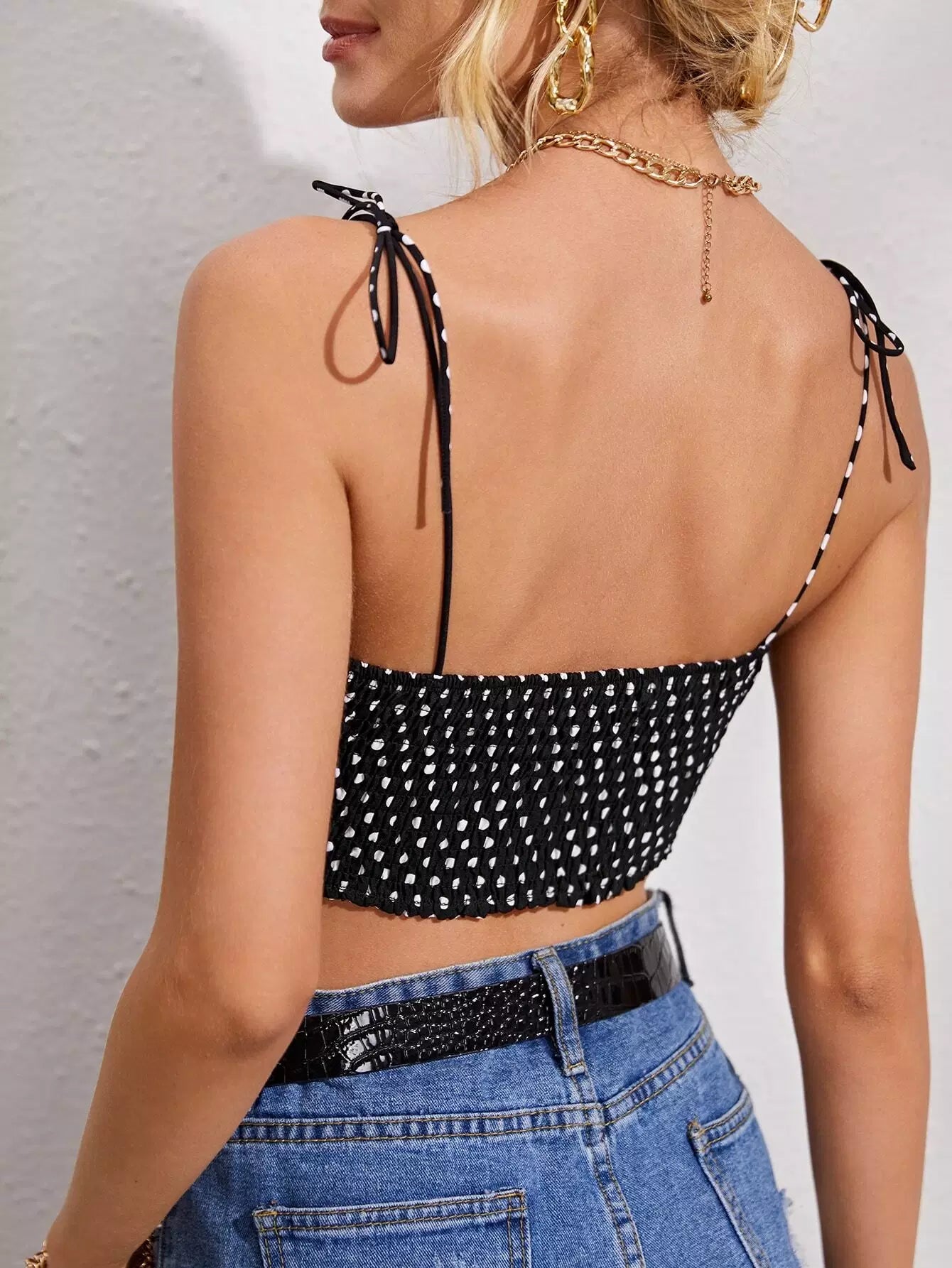 بلوزة كامي بطبعة منقطة بربطة عنق أمامية