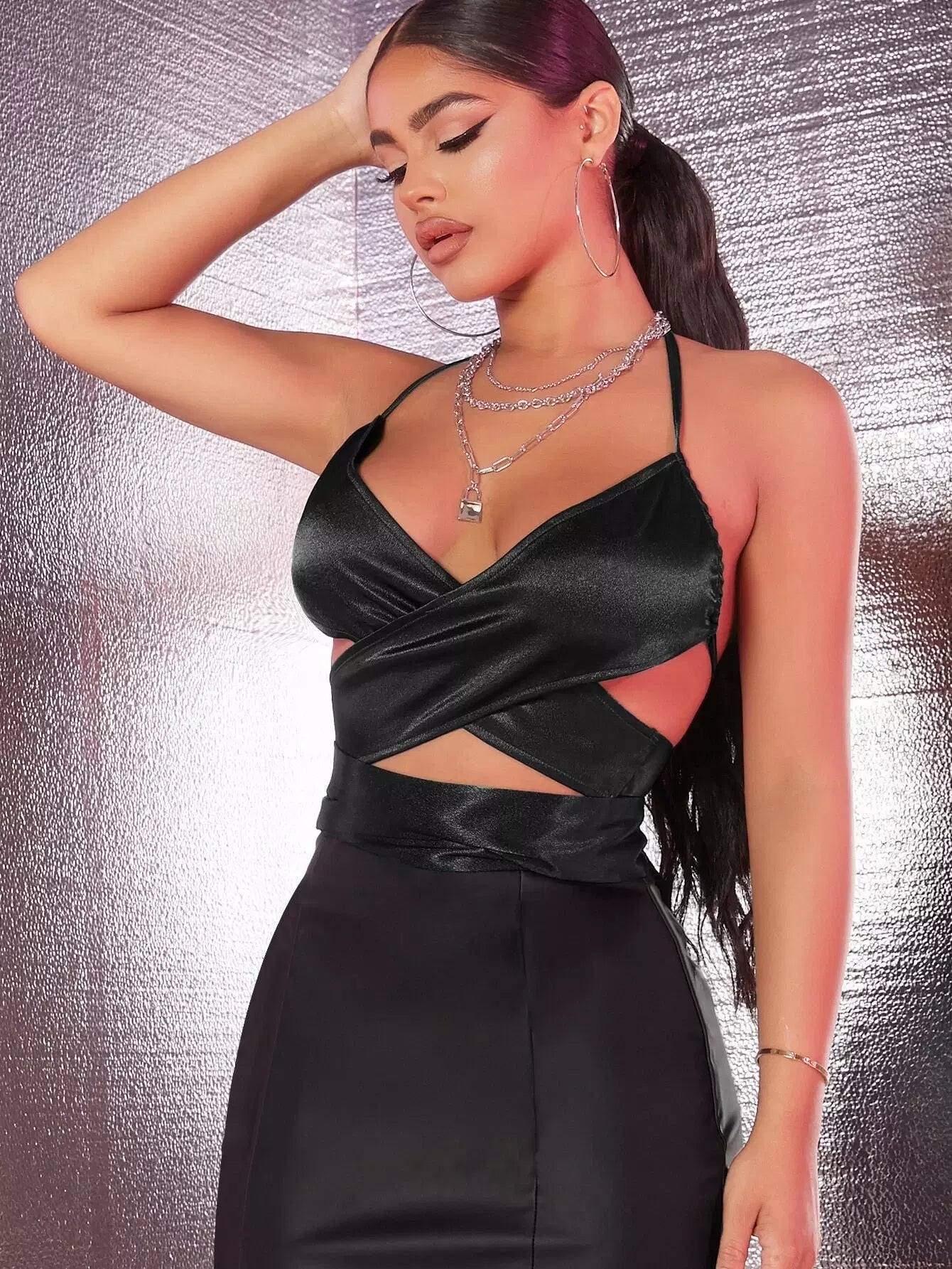 بلوزة بفتحة من الساتان برباط مفتوح من الخلف برباط مفتوح من الساتان