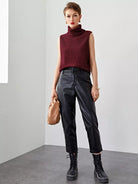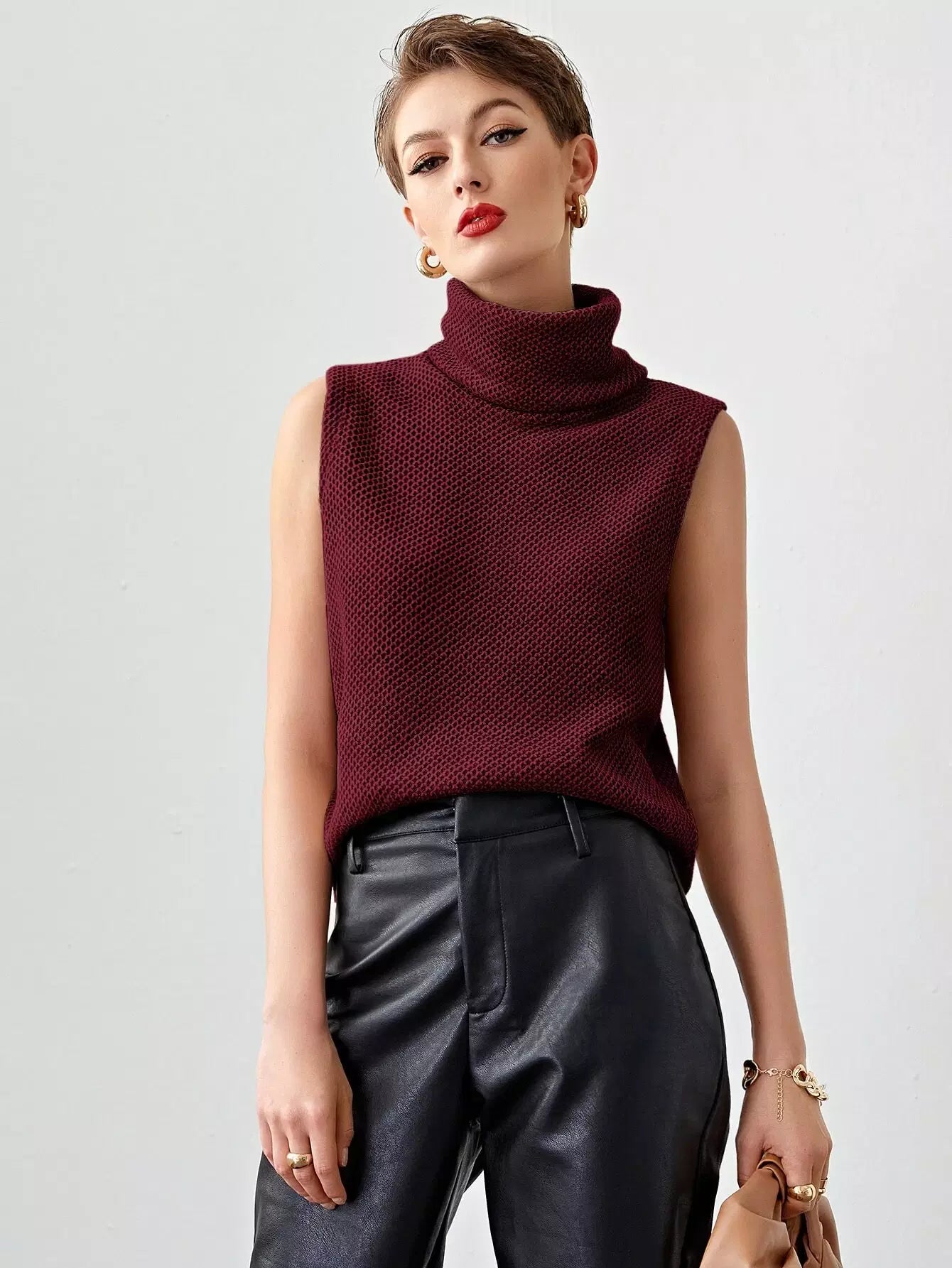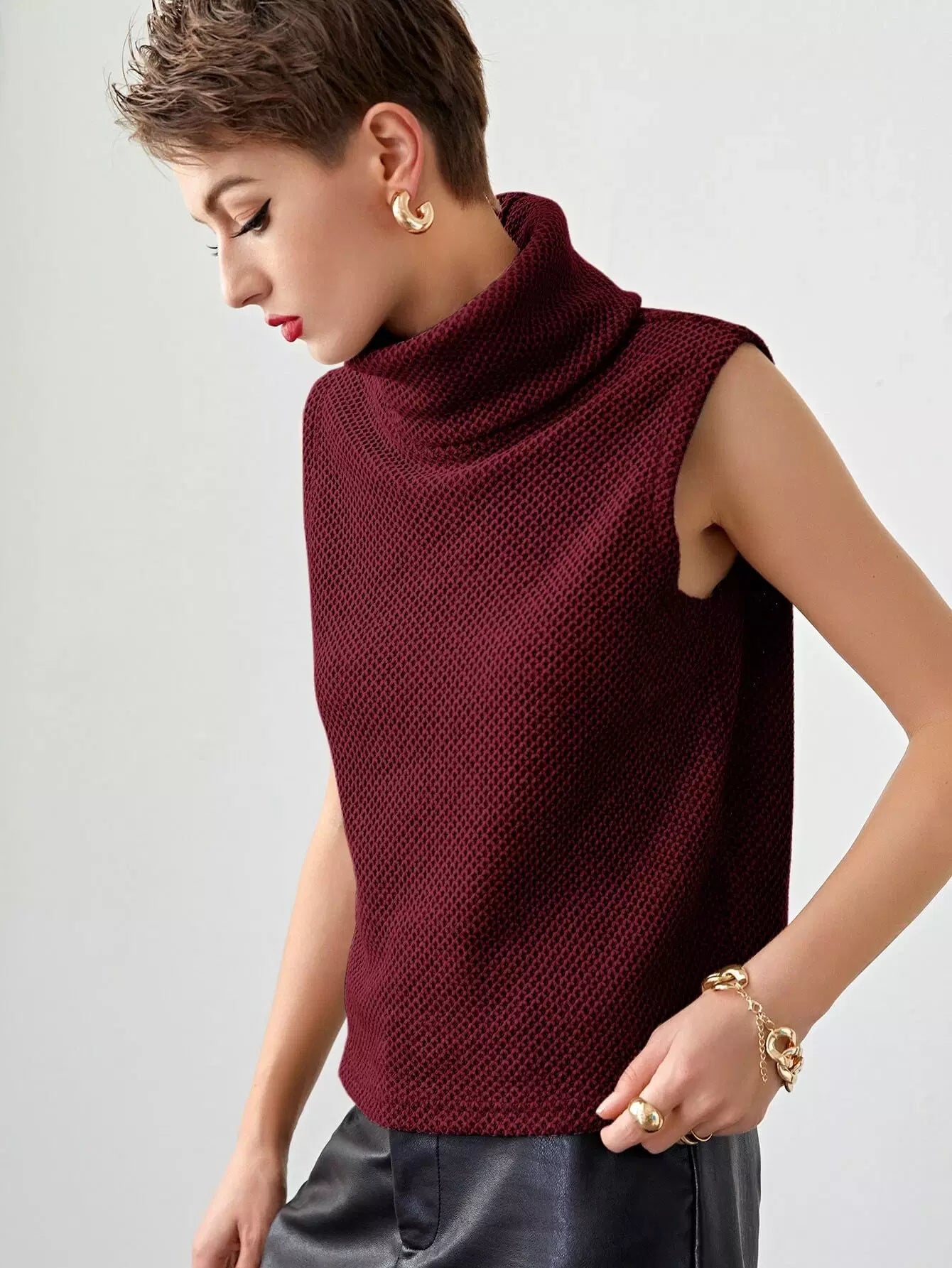 بلوزة بياقة مدورة متماسكة متماسكة سادة