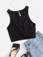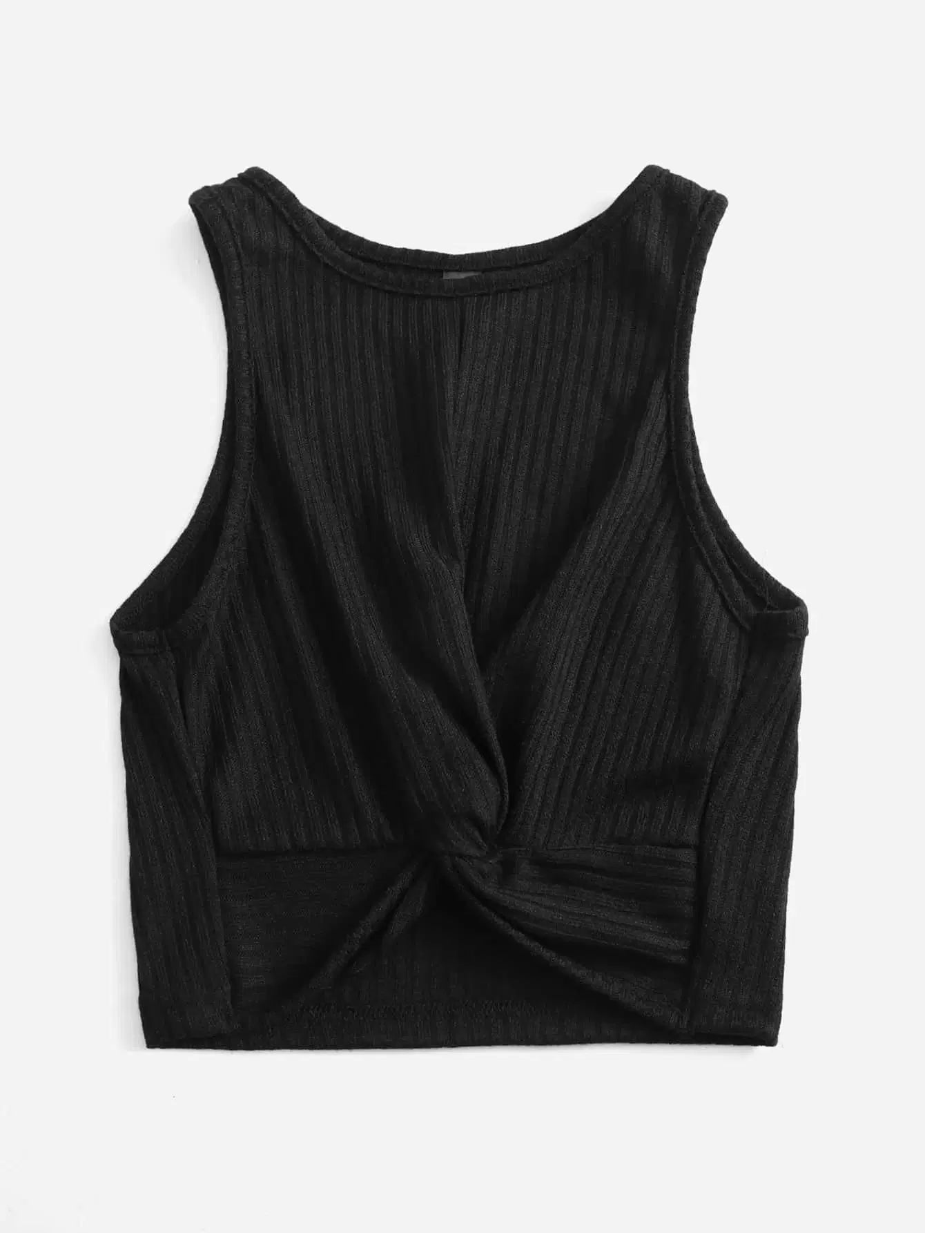 تانك قصير محبوك من الأمام بحياكة أمامية ملتوية