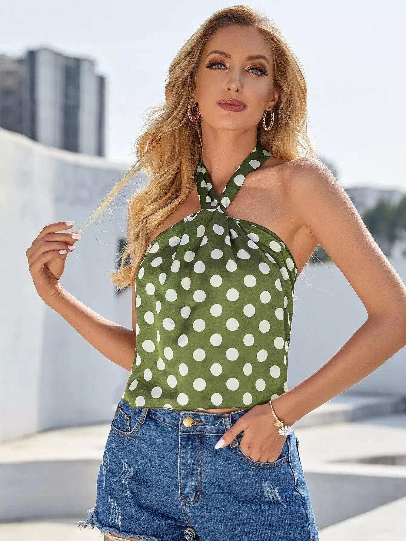 تويست أمامي بربطة عنق من الأمام وربطة عنق منقطة من الخلف