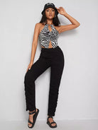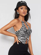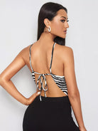 بلوزة قصيرة مخططة بنقشة حمار وحشي مقصوصة من الخلف بربطة عنق