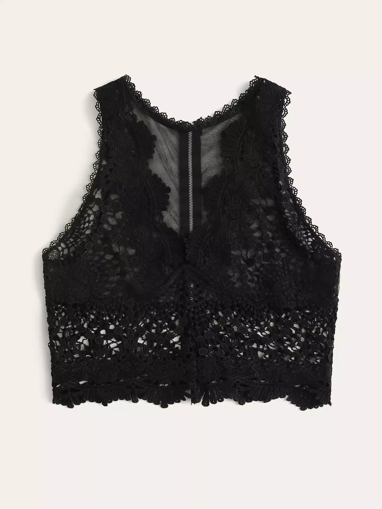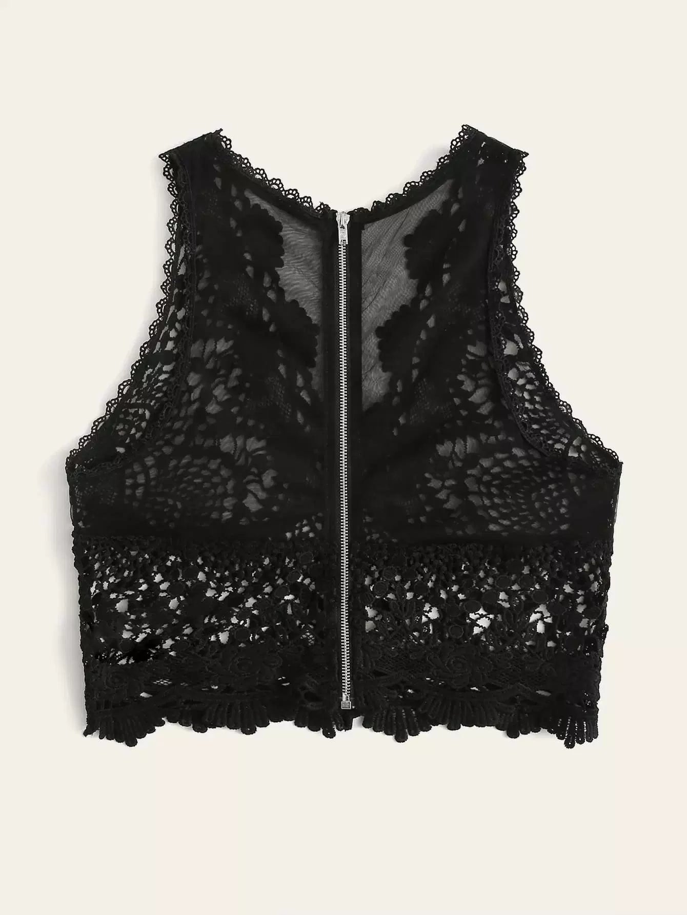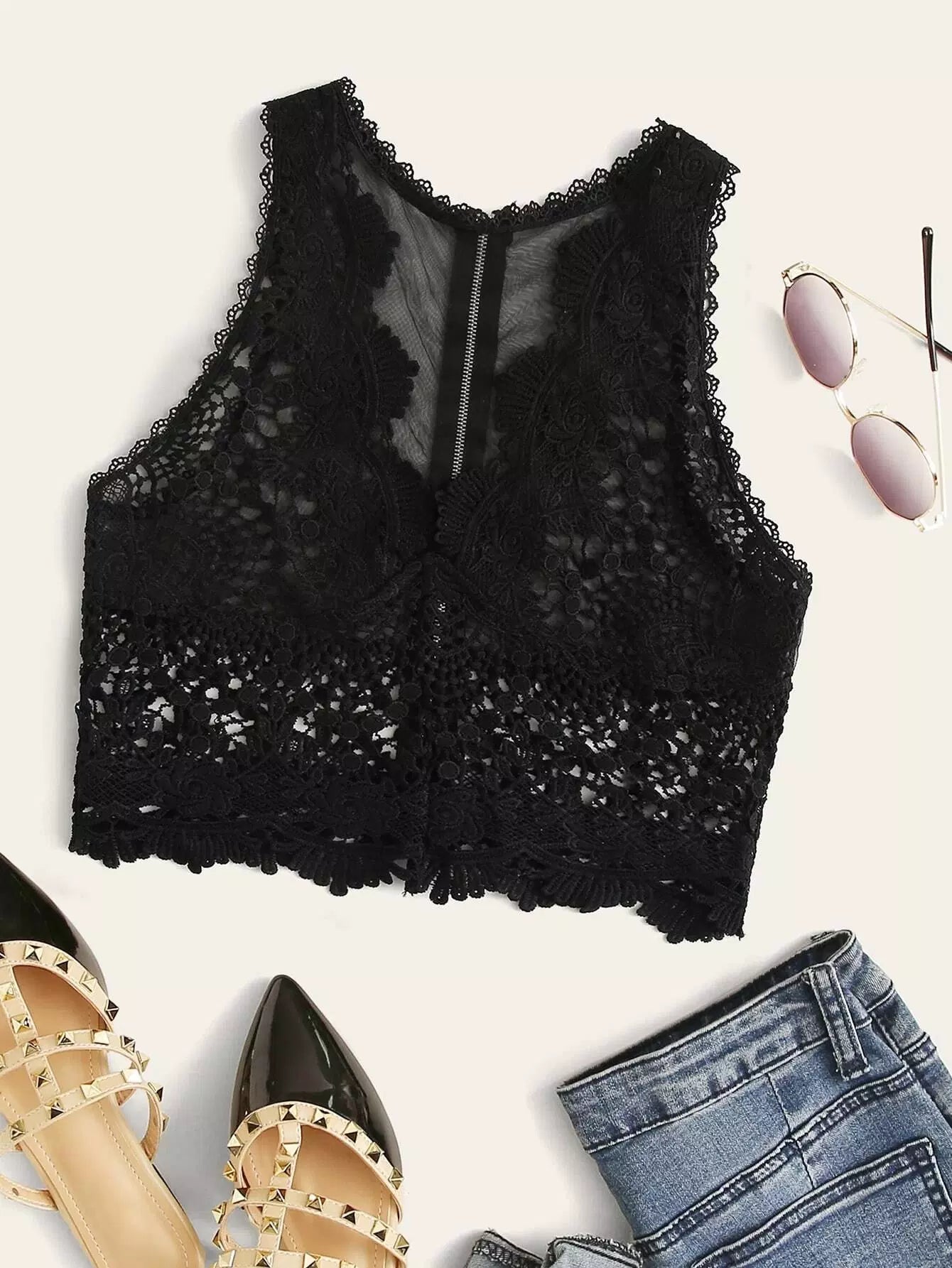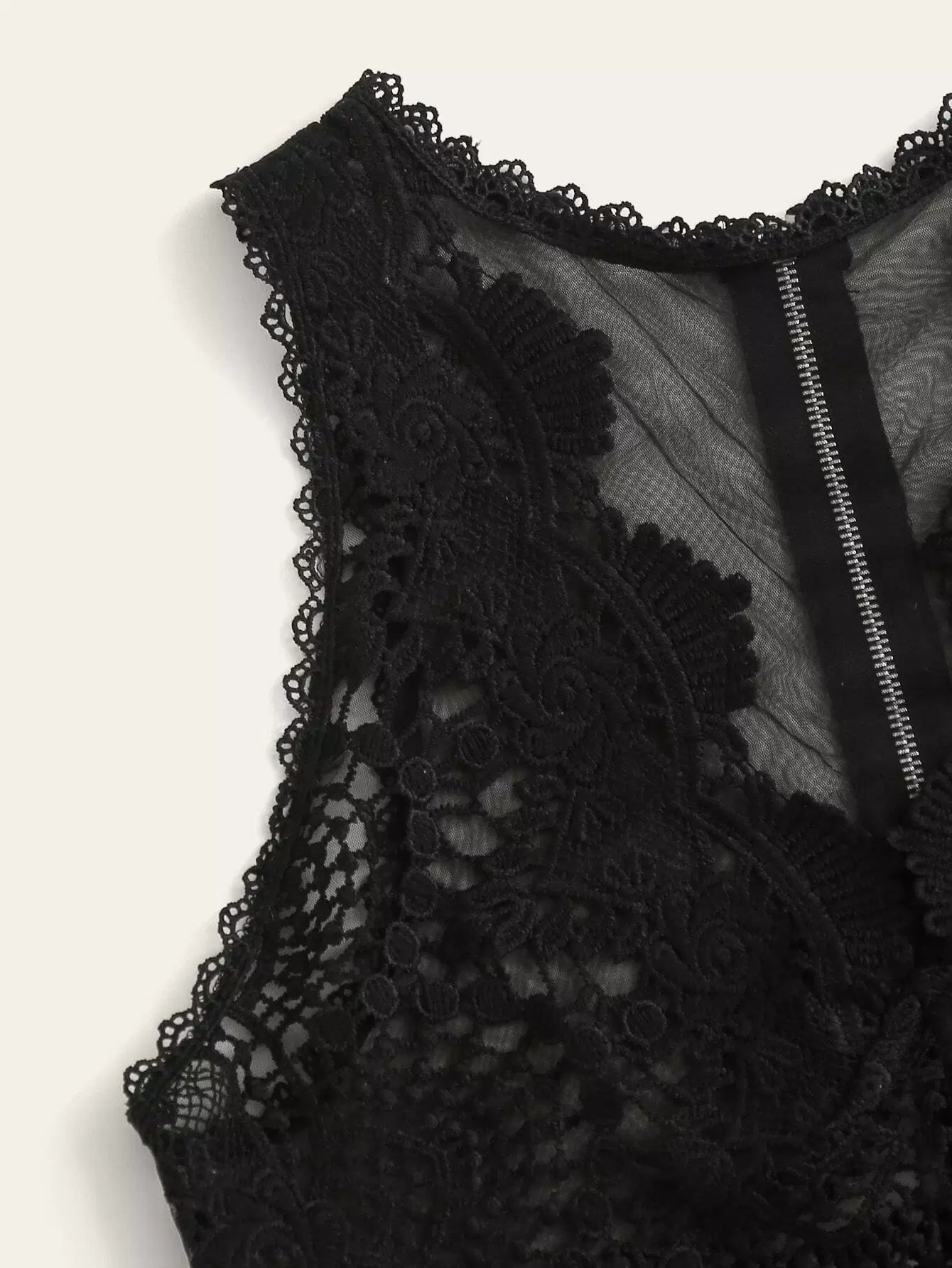 تانك توب من الدانتيل المزخرف بلوحة شبكية مع سحاب خلفي