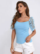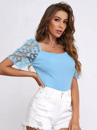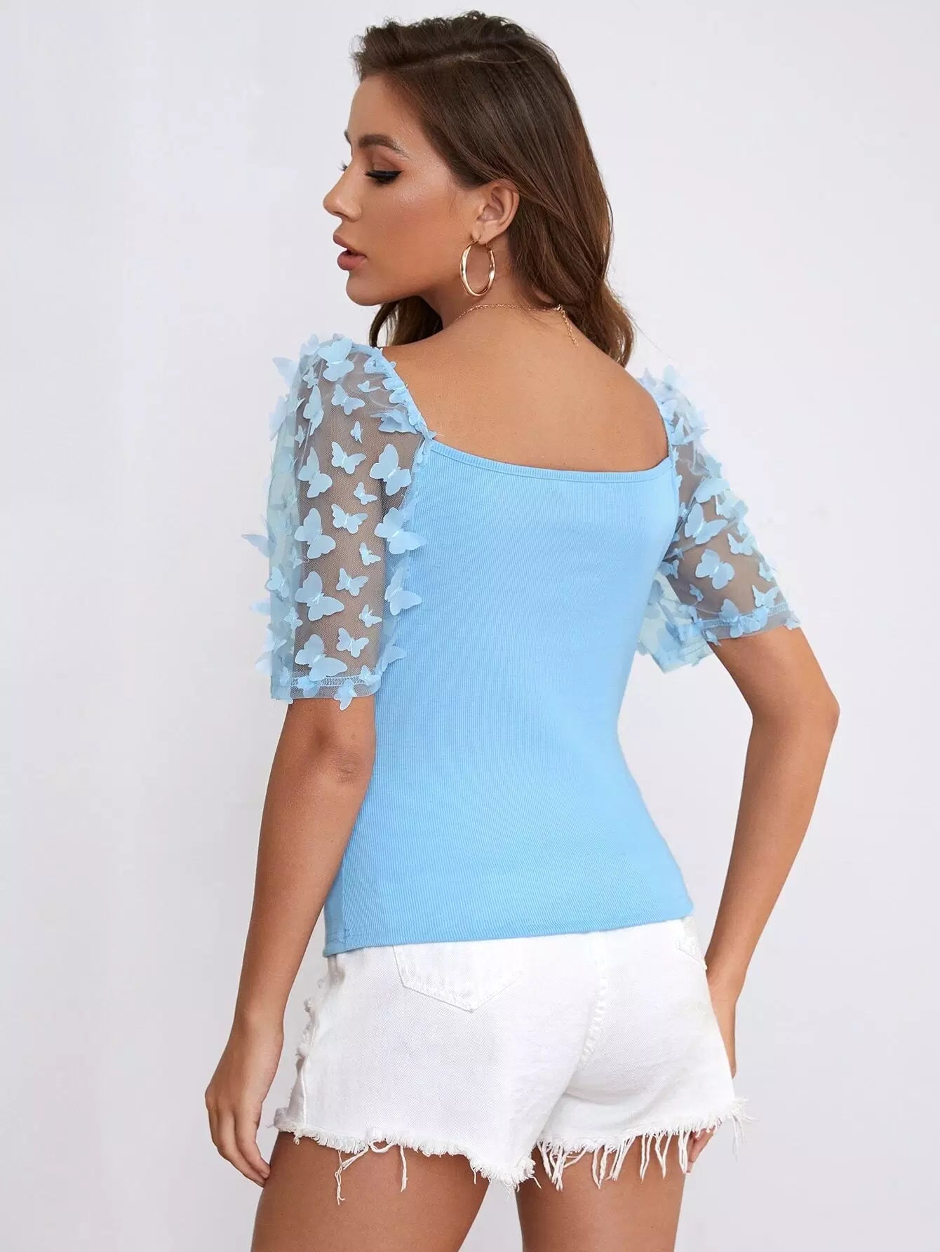 بلوزة بأكمام شبكية مرقعة على شكل فراشة