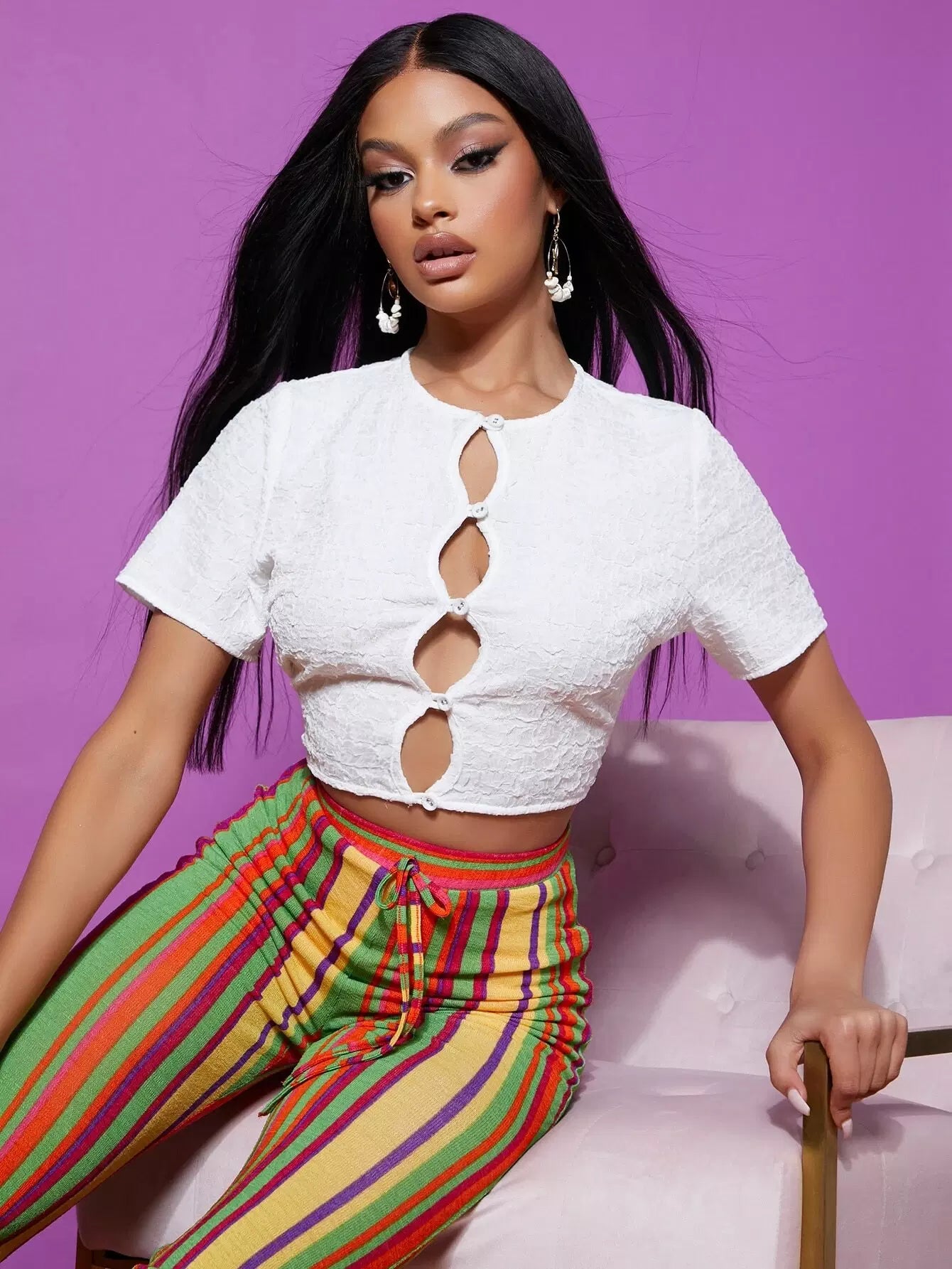 بلوزة قصيرة بأزرار أمامية بأزرار