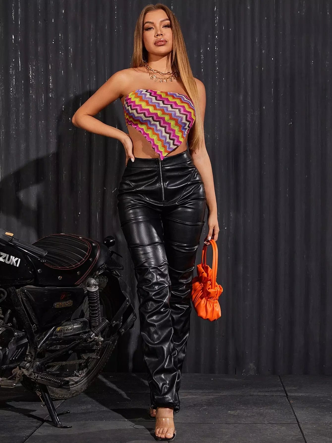 بلوزة بطبعة شيفرون وحاشية غير متماثلة