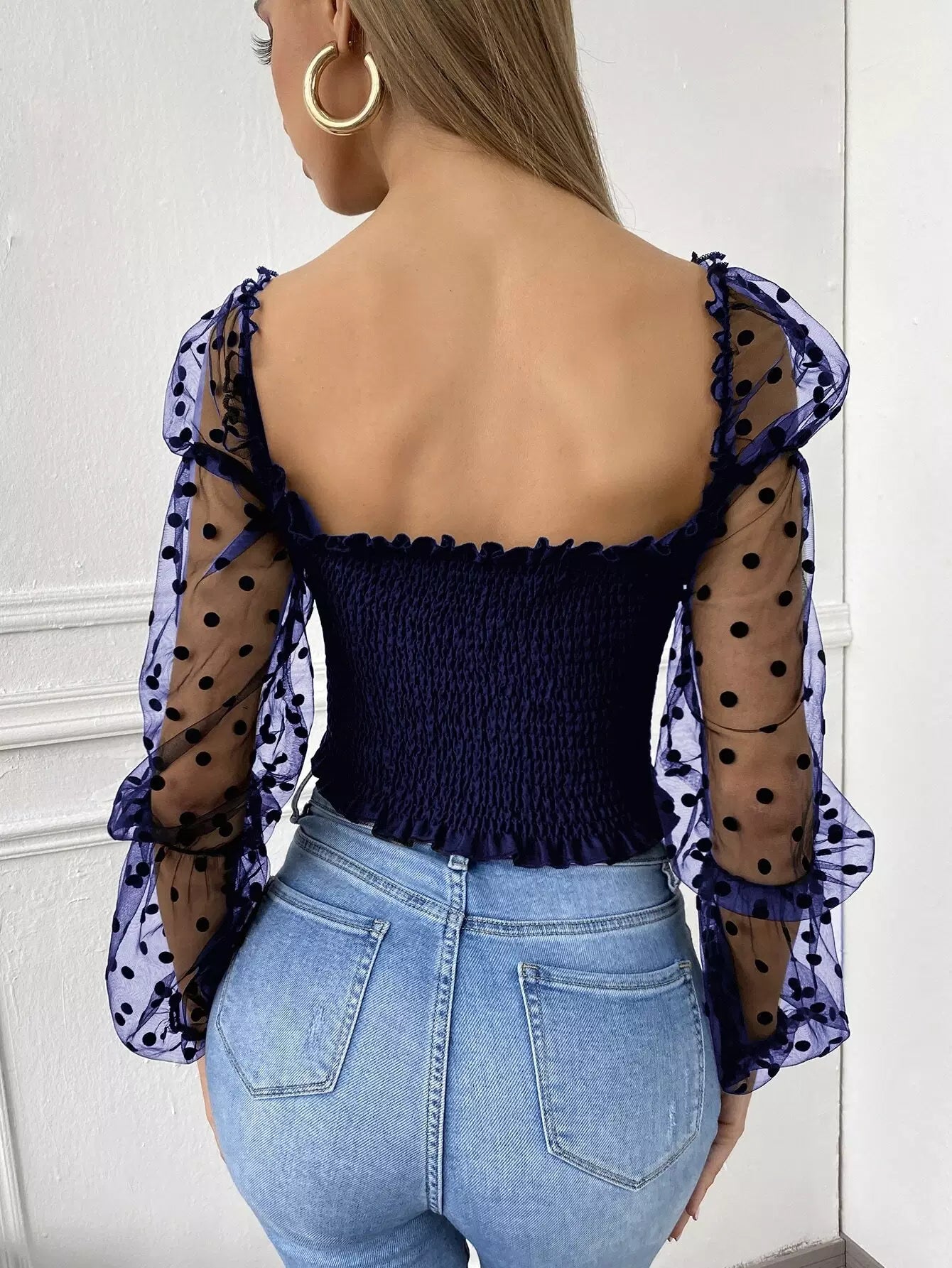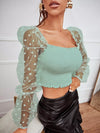 بلوزة بأكمام شبكية بأكمام شبكية بلون مغاير