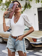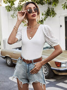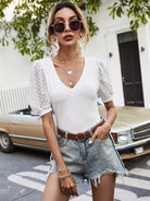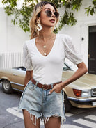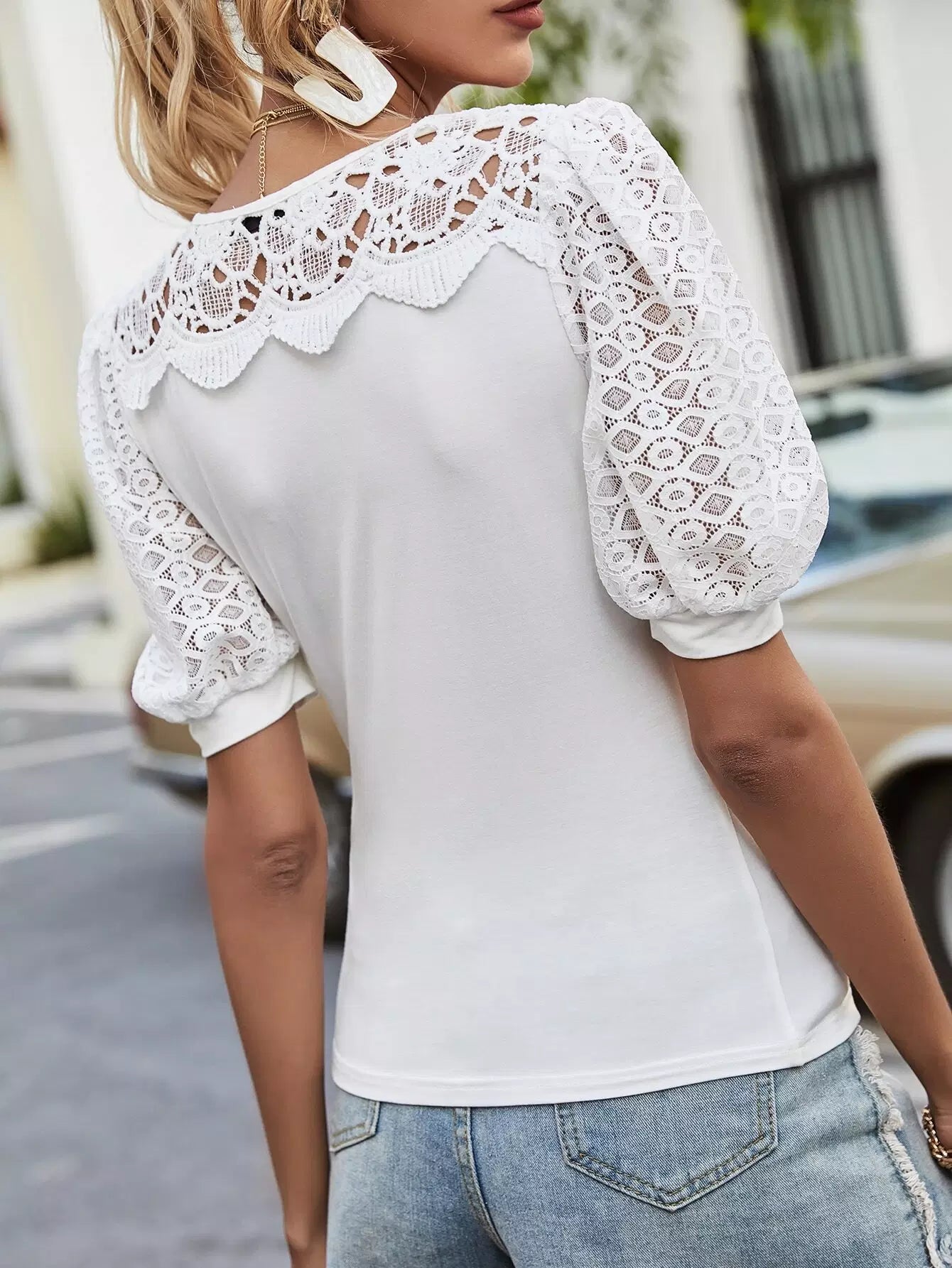بلوزة بأكمام منفوشة دانتيل بلون مغاير