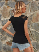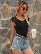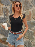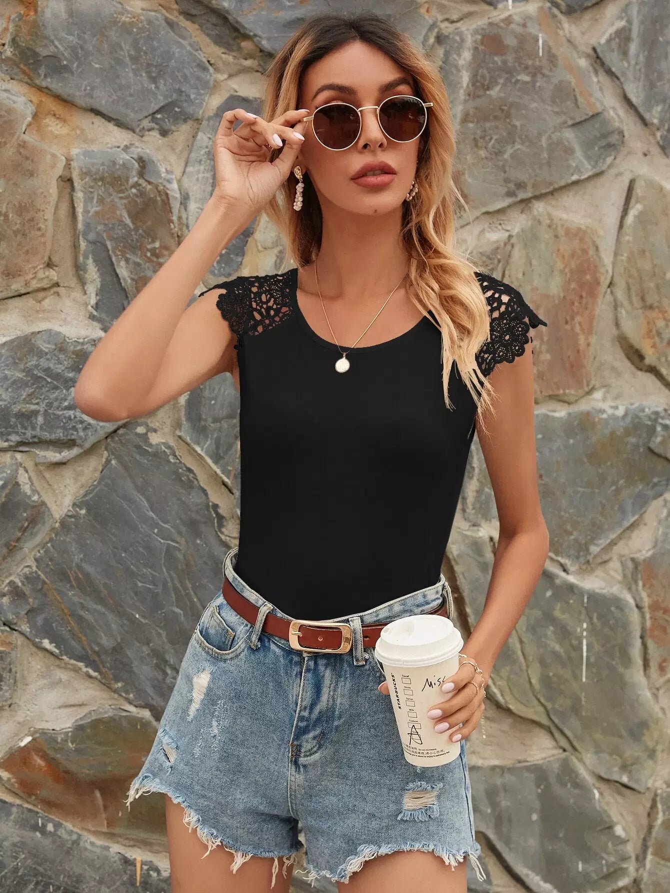 بلوزة بياقة دانتيل دائرية دانتيل بلون مغاير