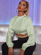 بلوزة ساتان بدون أكمام من الساتان على شكل صليب متقاطع من الساتان