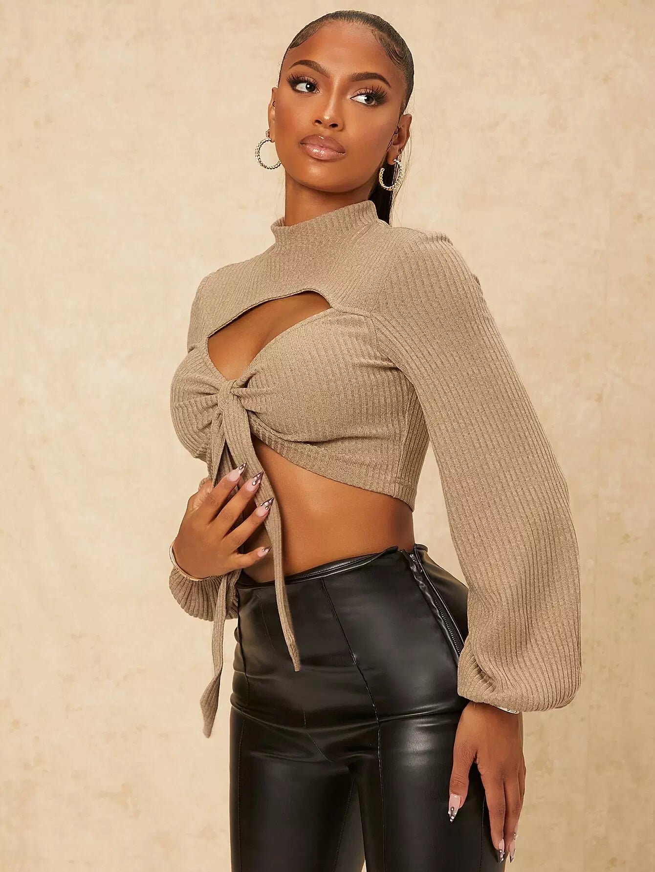 تي شيرت بأكمام مقصوصة بفتحة من الأمام بفتحة من الأمام برقبة ضيقة