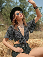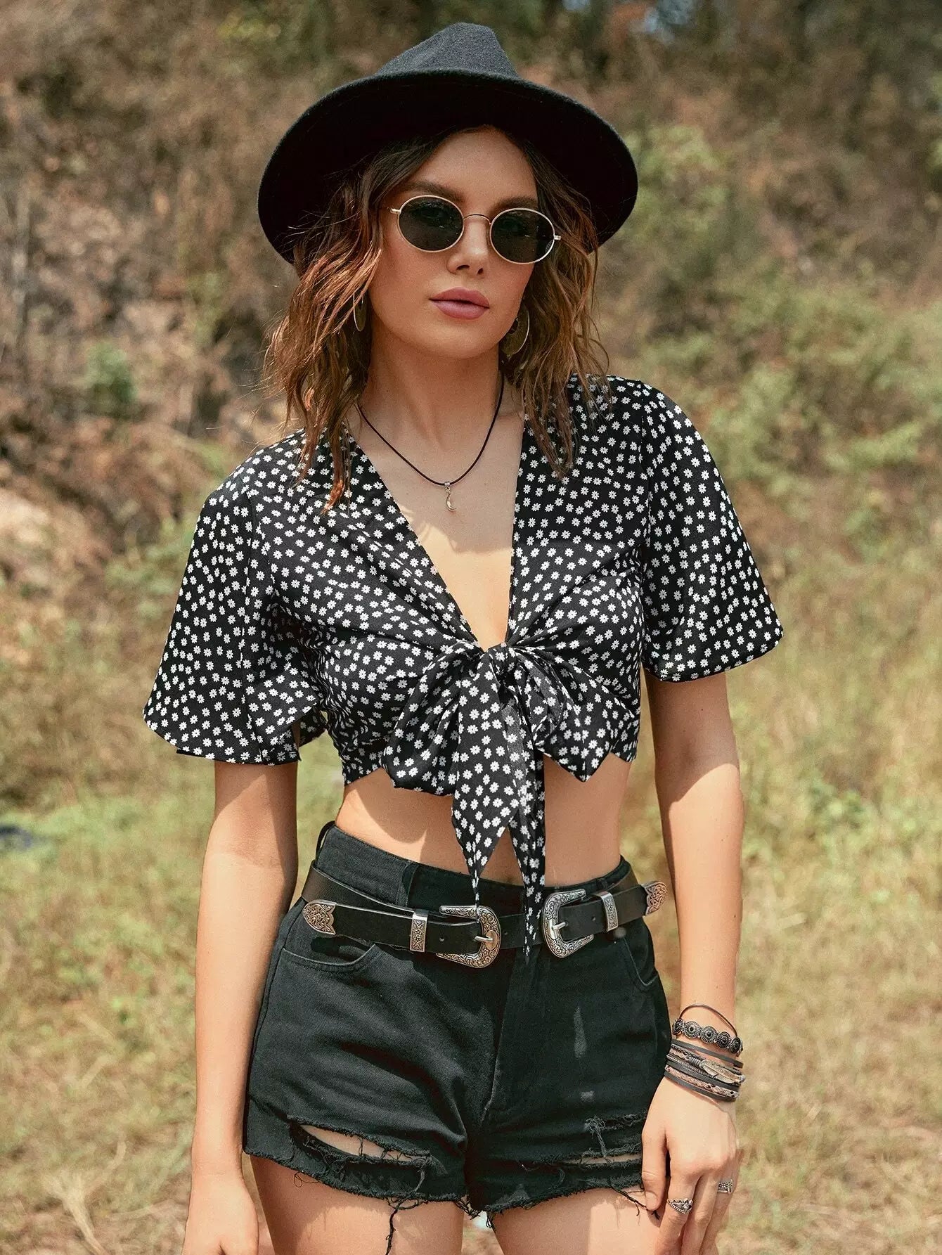 بلوزة قصيرة بعقدة زهرية ديتسي مزينة بالورود