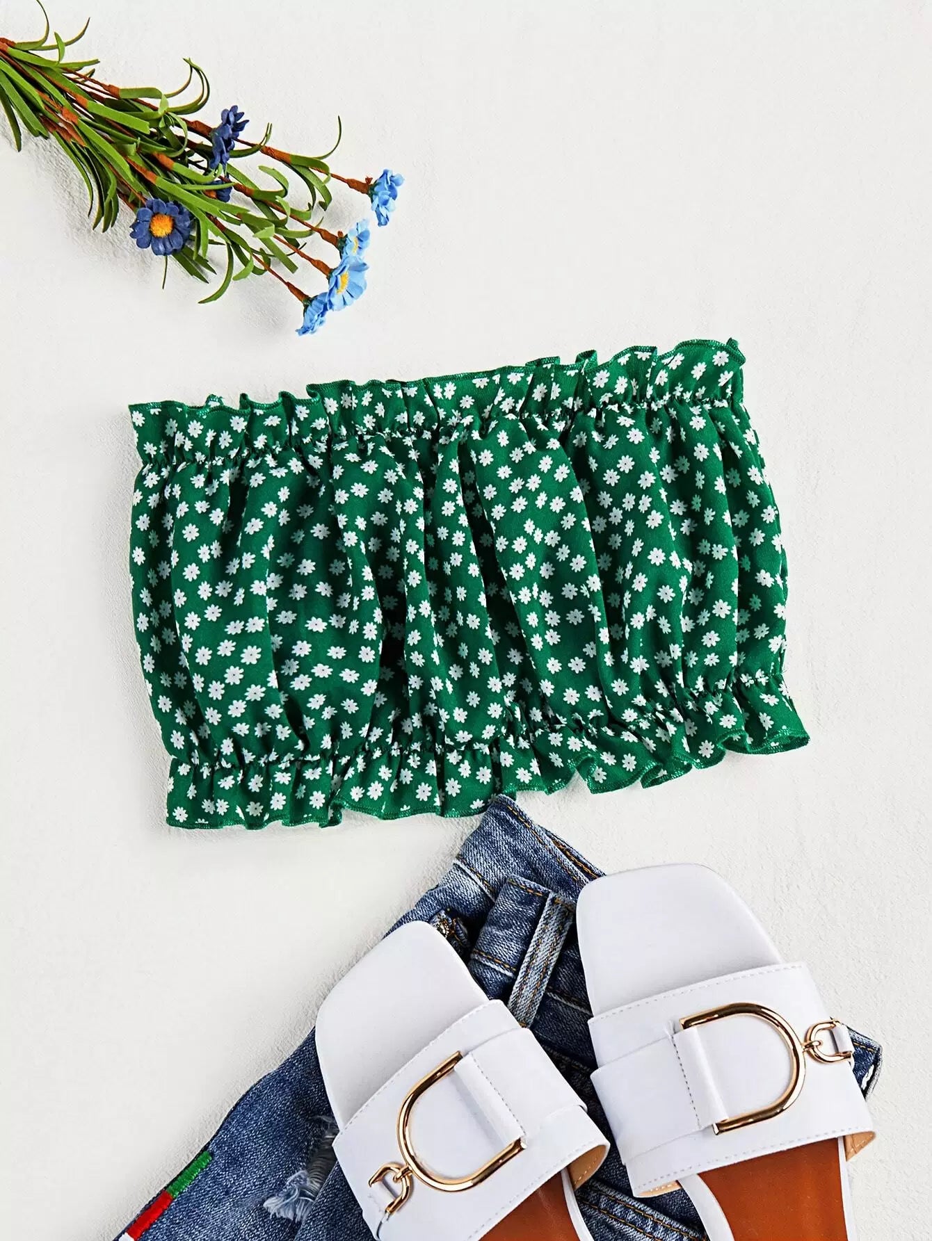 بلوزة ديتسي مزينة بكشكش مزركش مزركش بعصابة