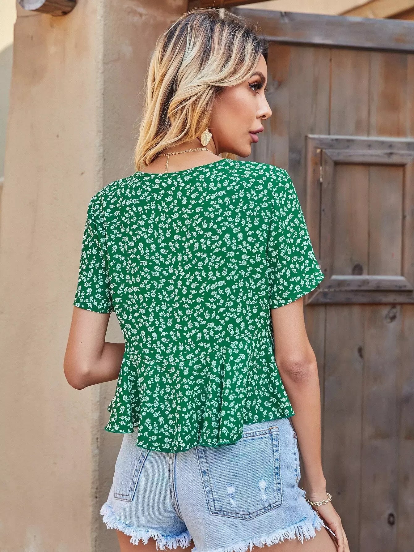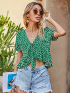 بلوزة ديتسي مزينة برباطات زهرية مكشكشة من الأمام بربطة عنق مزينة بكشكش