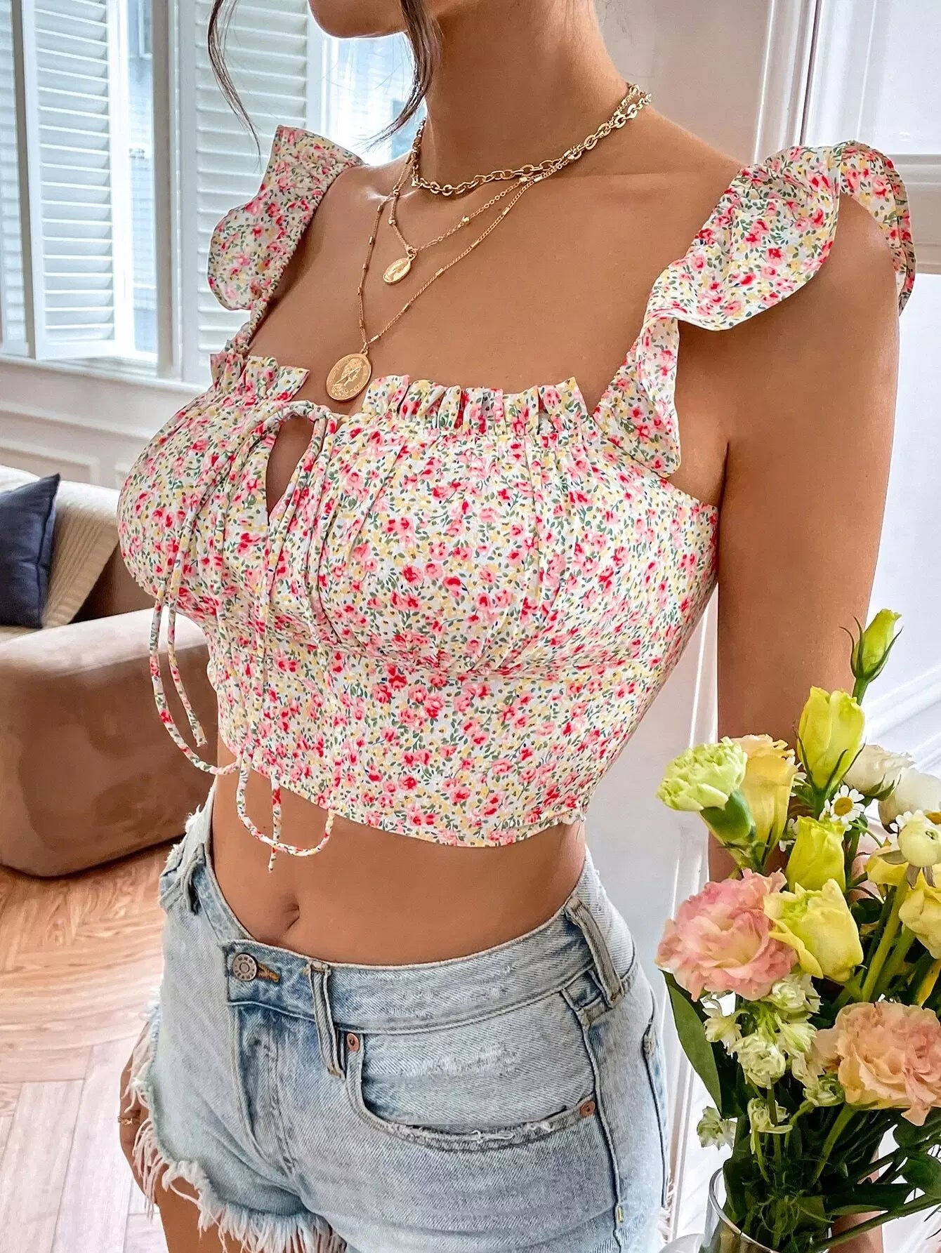 توب ديتسي مزين برباط أمامي مزين بكشكش من الأمام