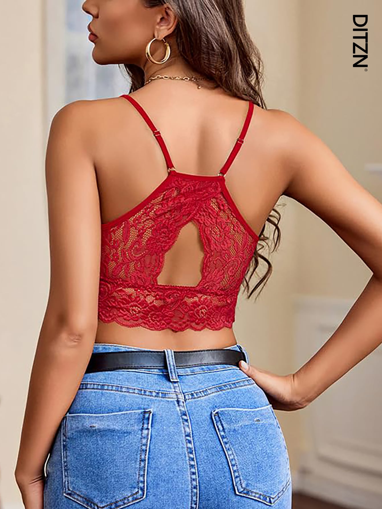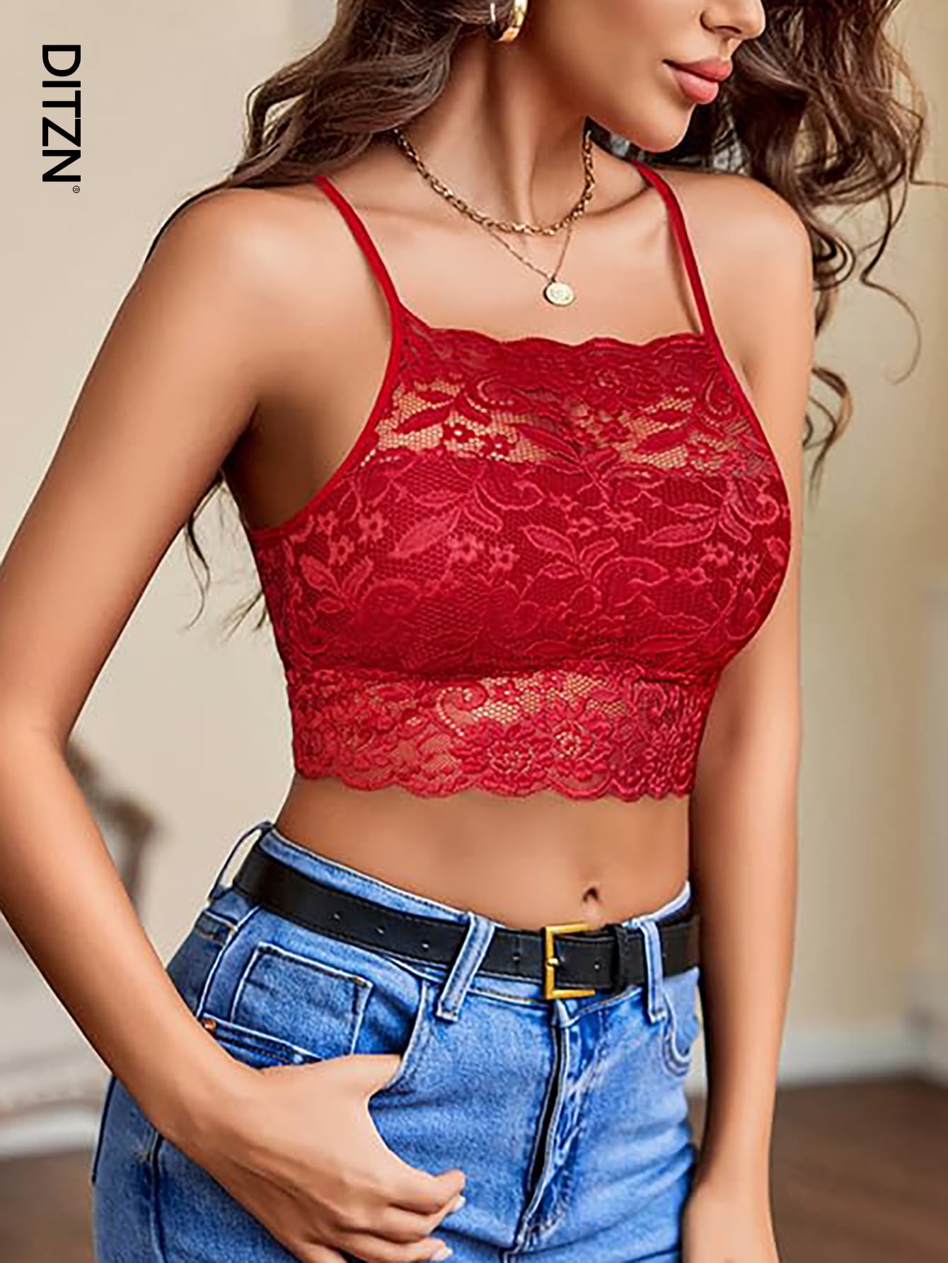 women DITZN Women's Lace Bra Fashion Camisole Undershirt Inside Backless Outer Wear Bust Double Sexy Lingerie Pullover