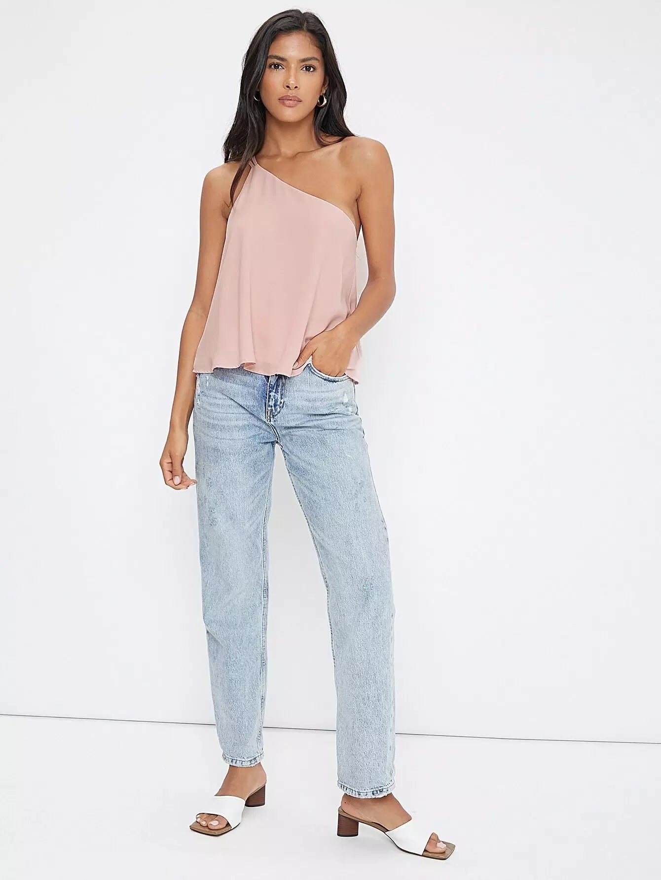 بلوزة بحزام مزدوج بحزام مزدوج بكتف واحد