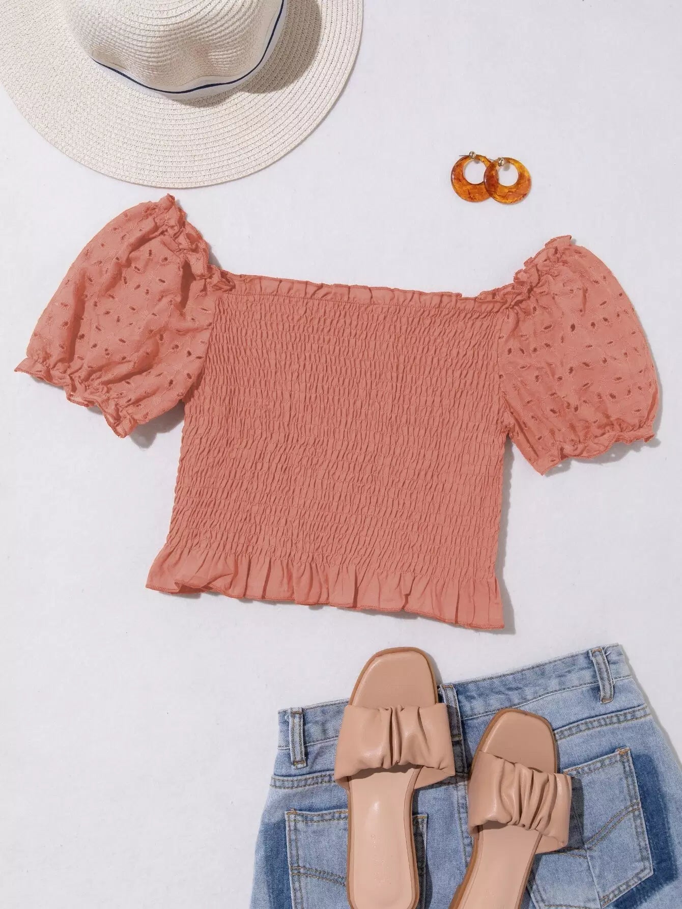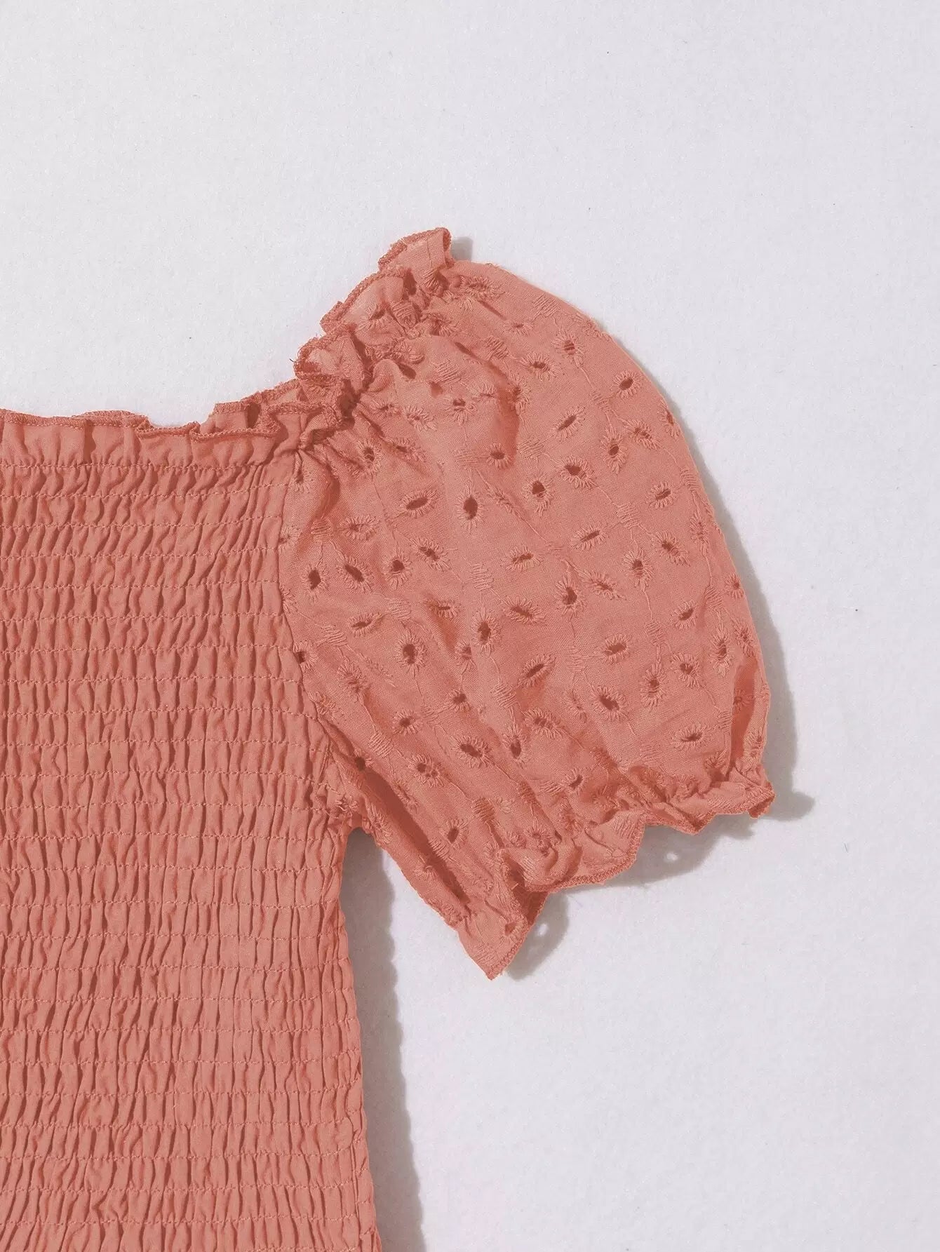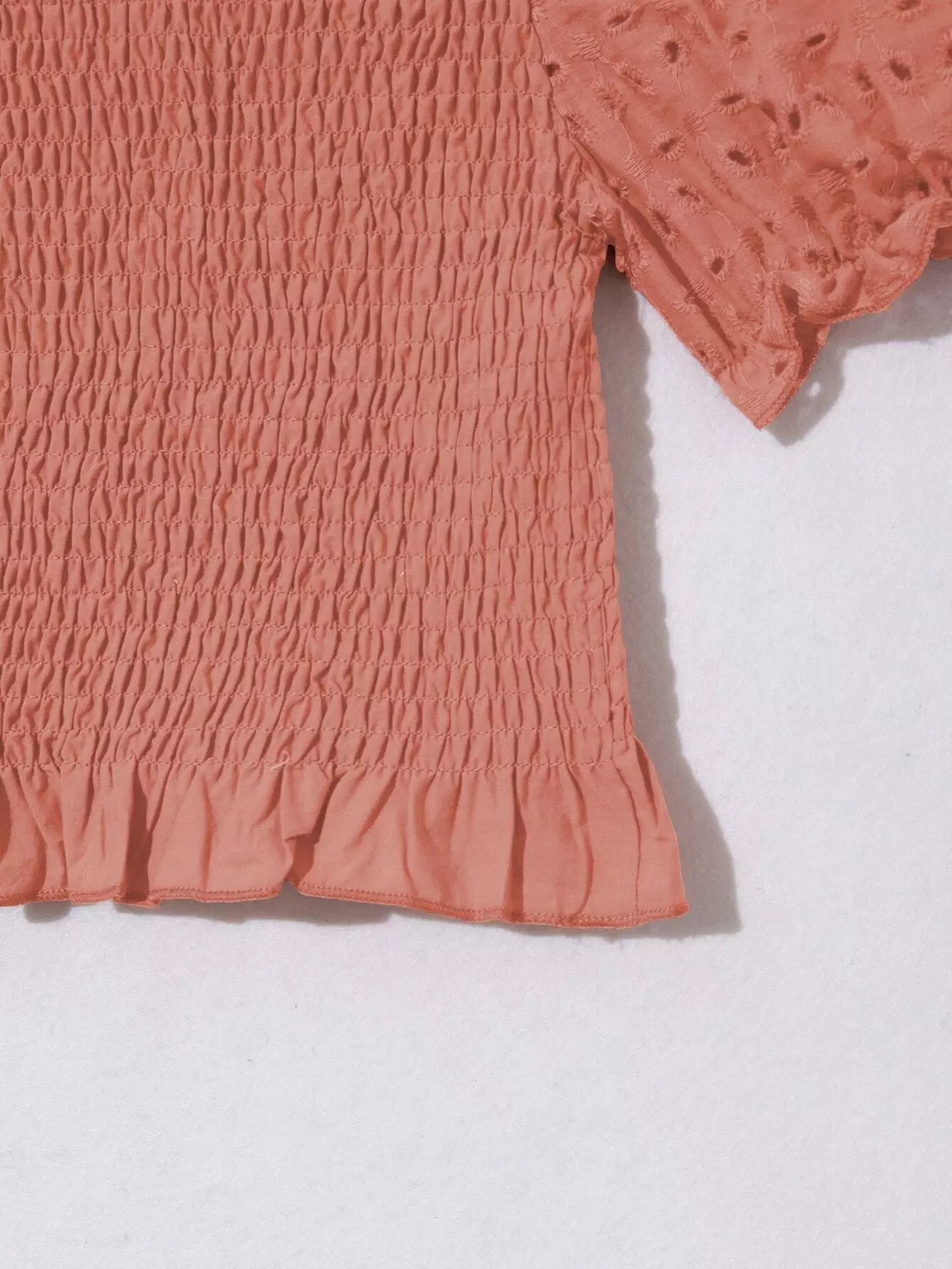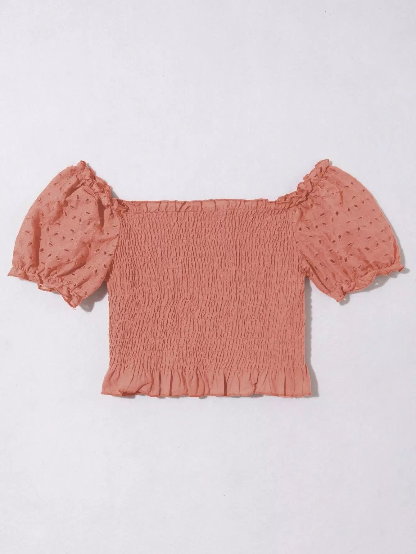 بلوزة قصيرة بأكمام منفوخة مطرزة بتطريزات العيينة